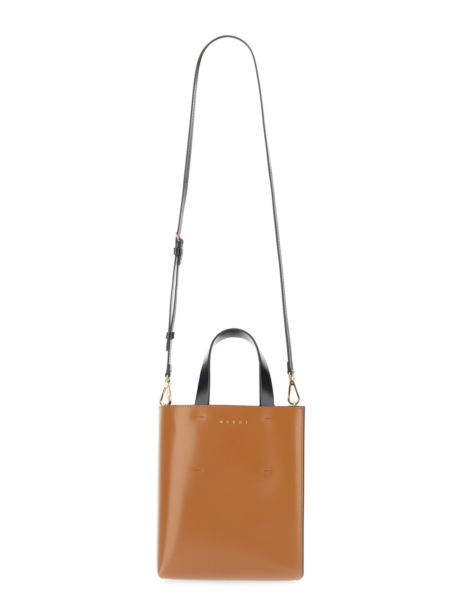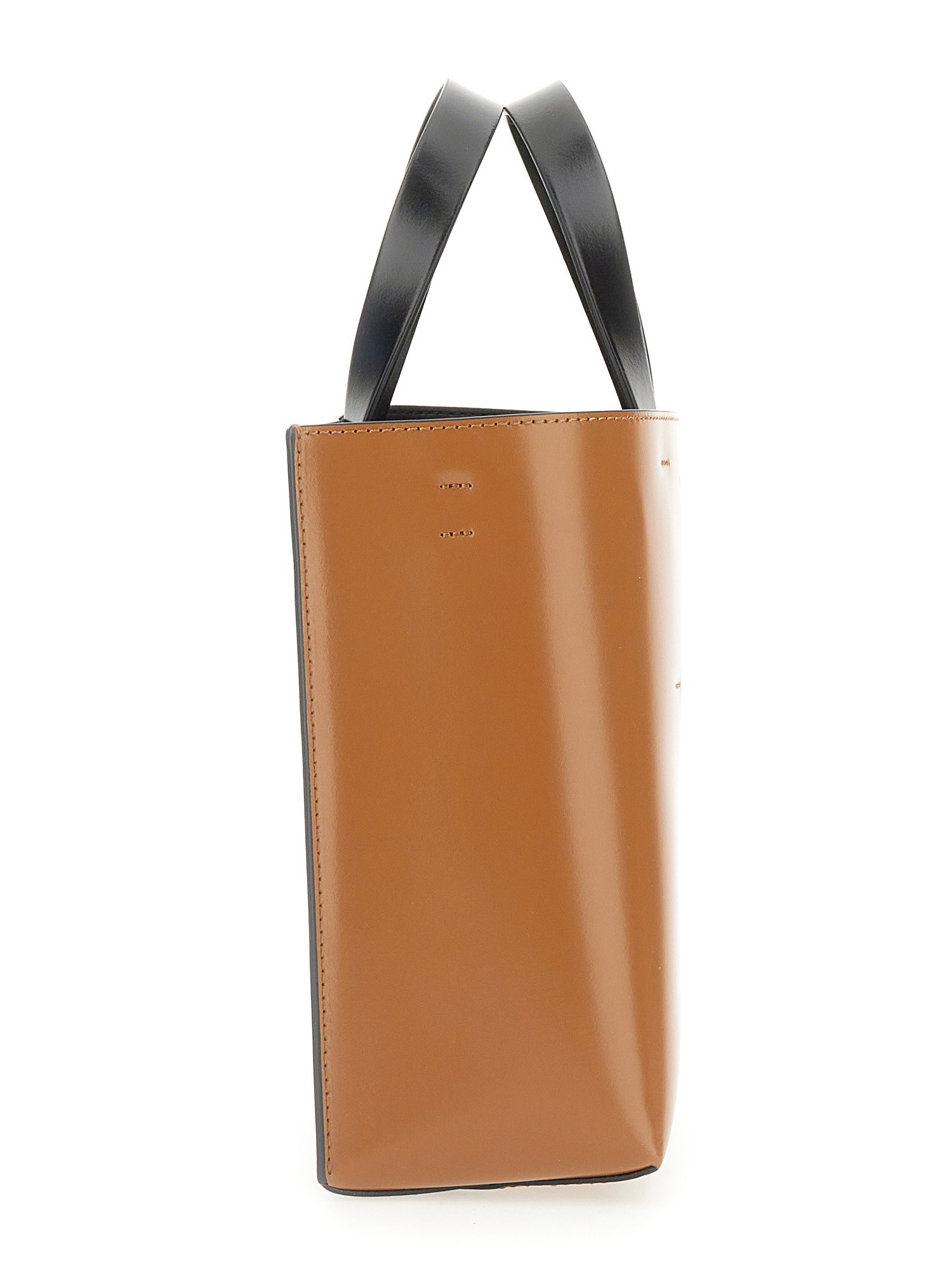 Questa mini borsa in pelle Museum di Matrni presenta un design classico e vintage. È dotata di una tracolla rimovibile e di un doppio manico per trasportarla con facilità. La borsa ha un interno in tessuto con coulisse. È inoltre impreziosita da un design a blocchi di colore.