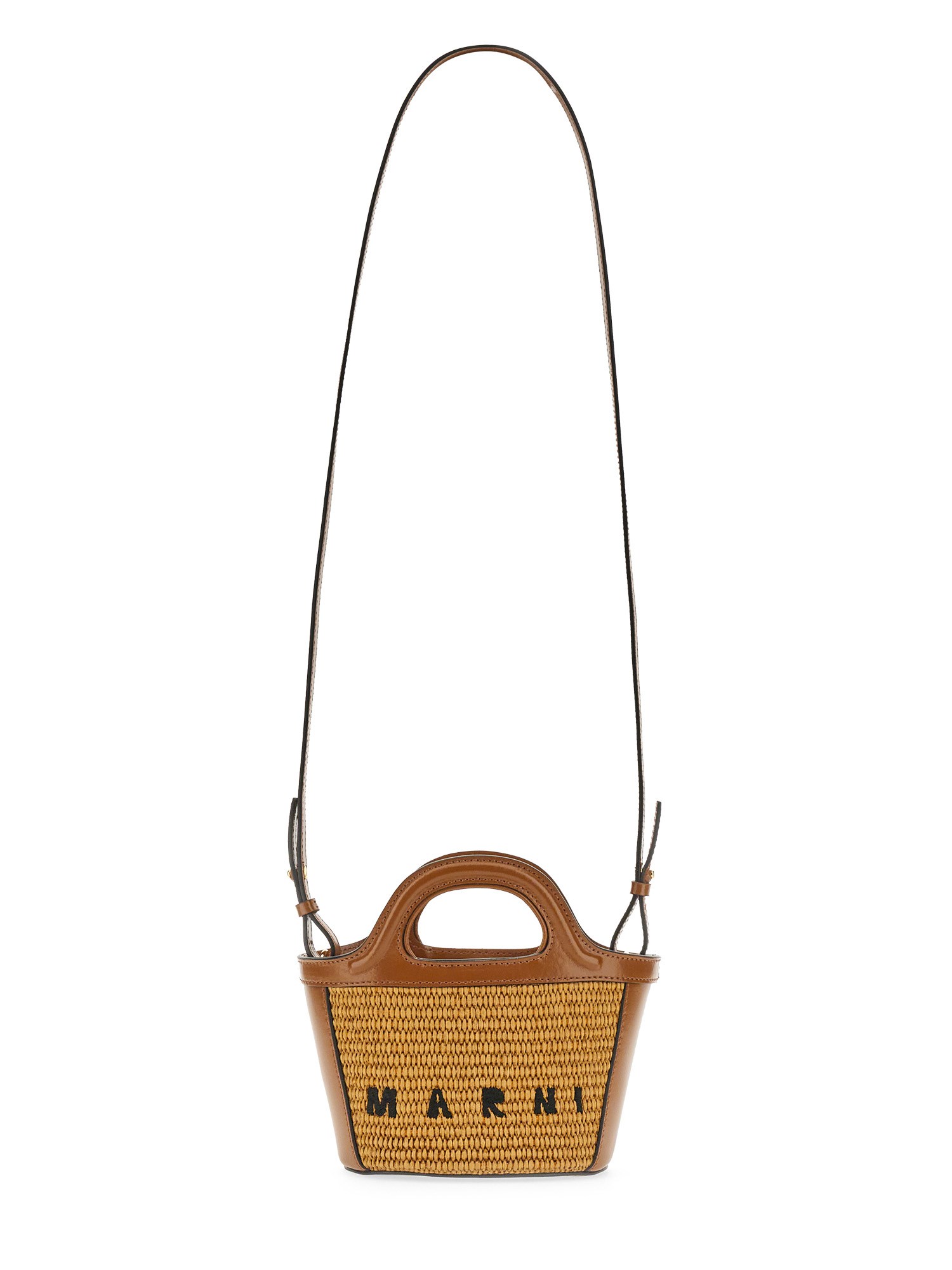BORSA TROPICALIA MICRO IN PELLE E TESSUTO EFFETTO RAFIA