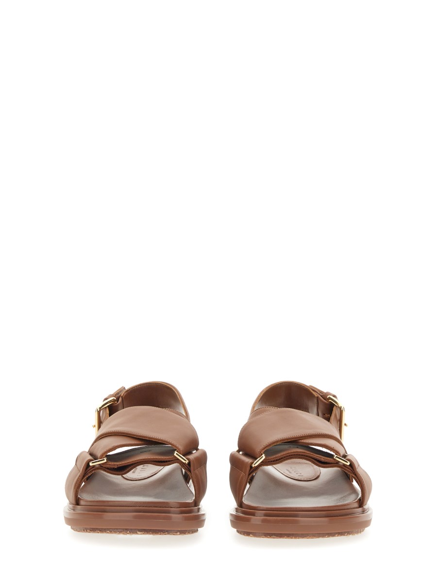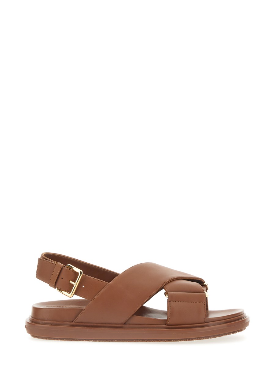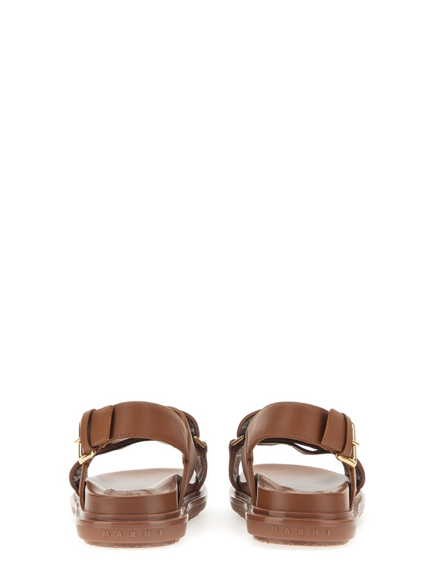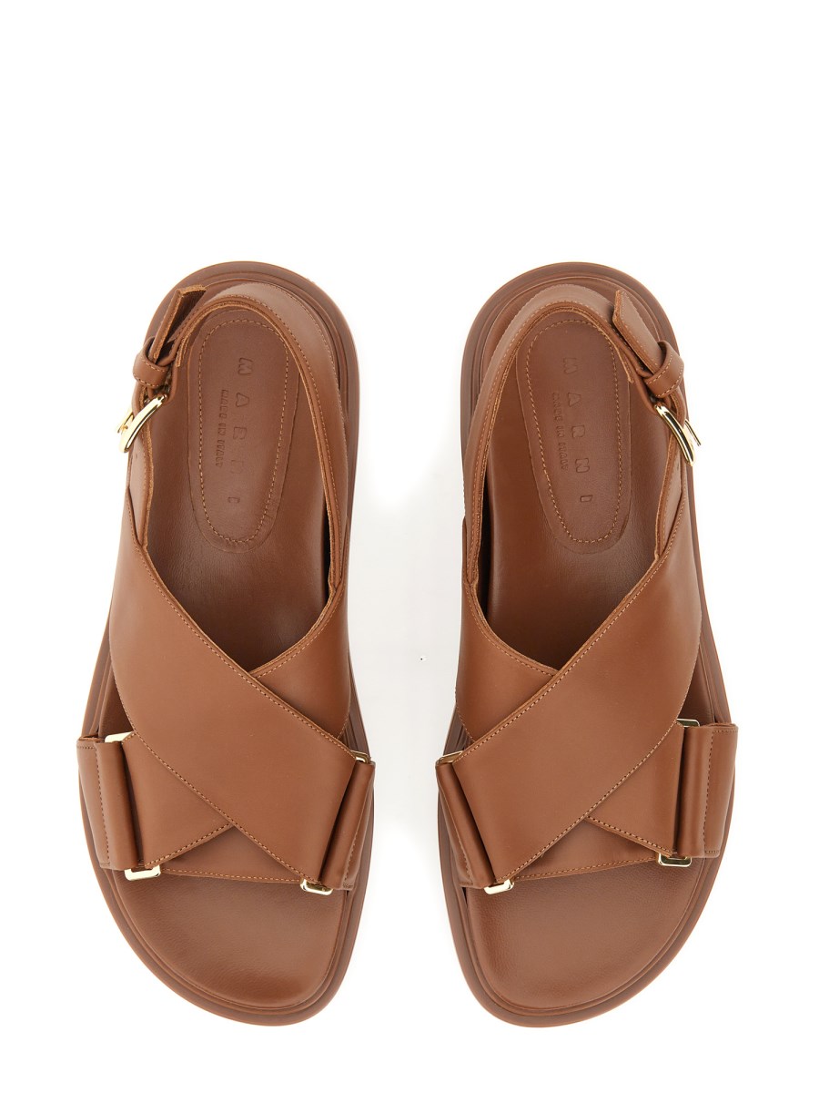 I sandali in pelle di Marni sono un pezzo elegante e moderno per le uscite casual. I sandali hanno una tomaia in pelle incrociata, una fodera morbida e un plantare imbottito. I sandali hanno uno stile slip-on e una suola in gomma. Sono impreziositi da accessori in metallo con finitura dorata. Un look classico ed elegante per una giornata in spiaggia o in barca.