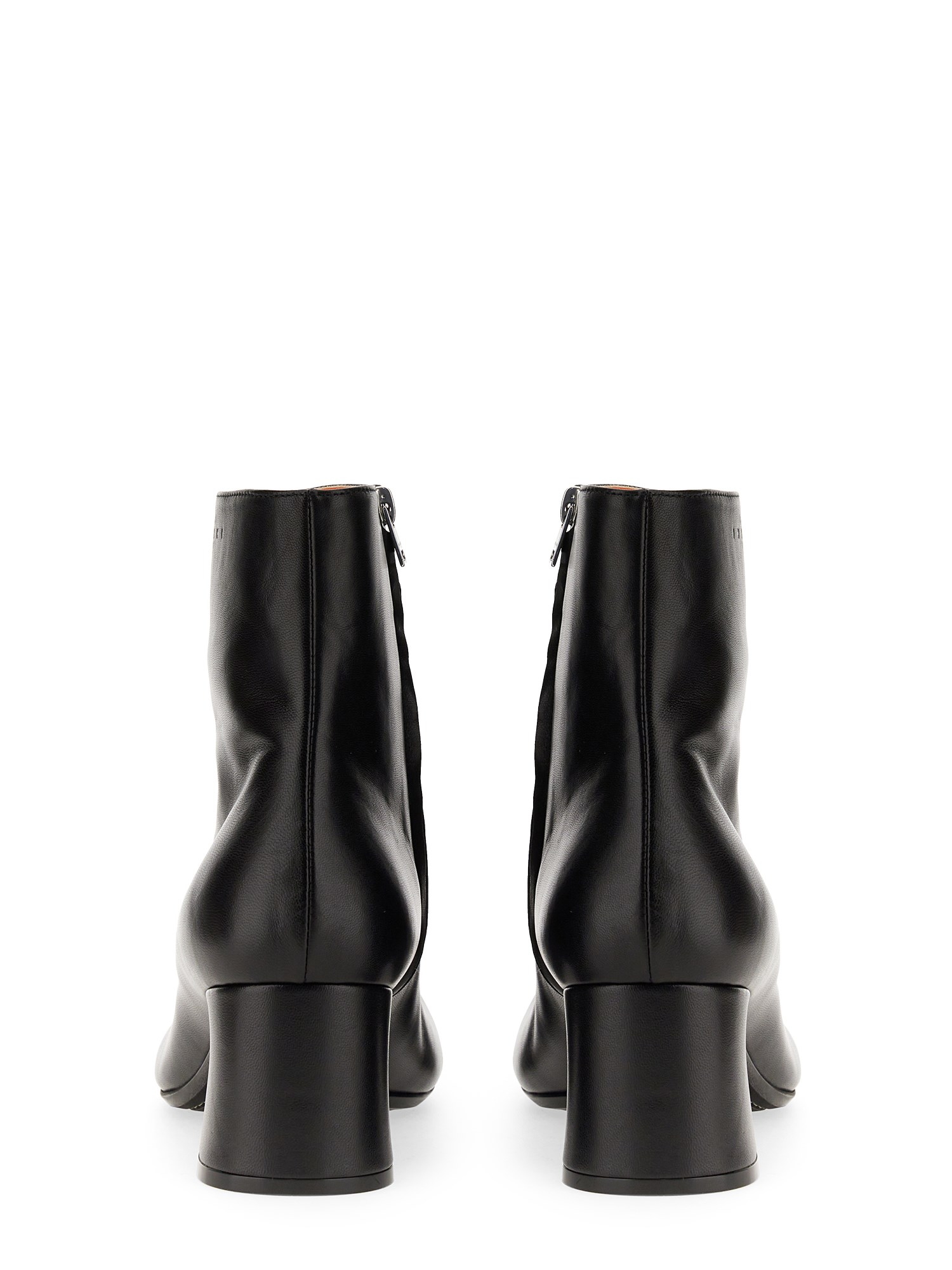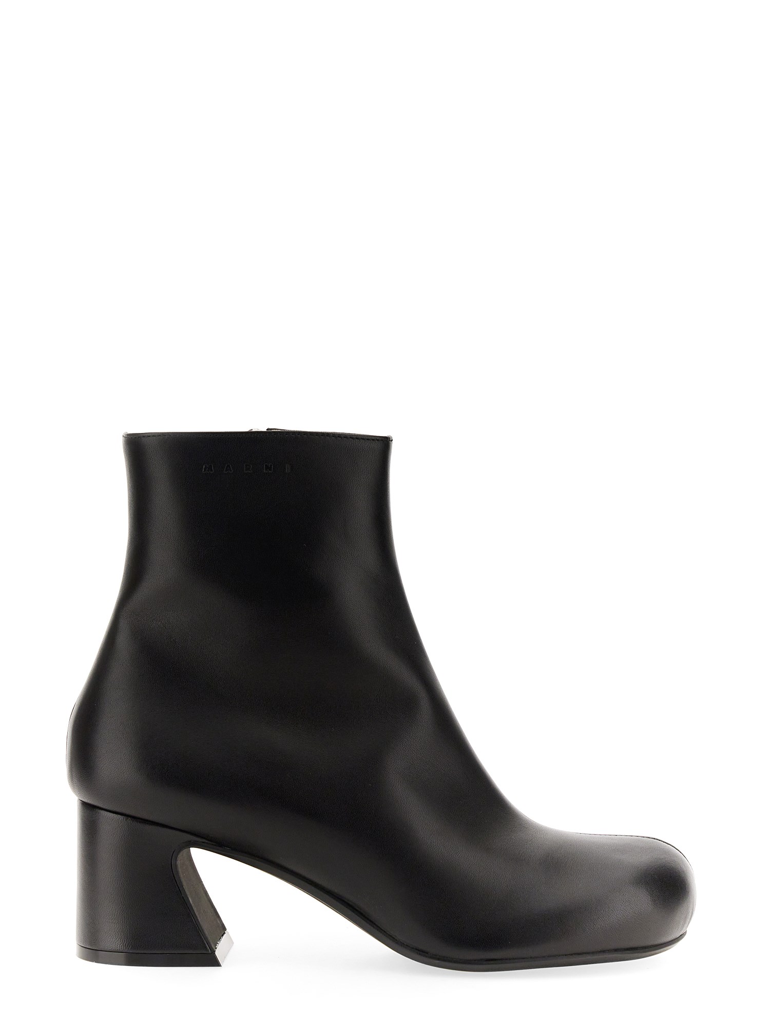 Questo stivaletto di Marni è uno stile comodo e di tendenza. È realizzato in tessuto elasticizzato e presenta una punta rotonda e una chiusura con cerniera laterale. Ha una nappina attaccata alla caviglia. Lo stivale è comodo da indossare e ha un look elegante. Ha un tacco di 6,5 cm, una suola in gomma e un logo laterale.