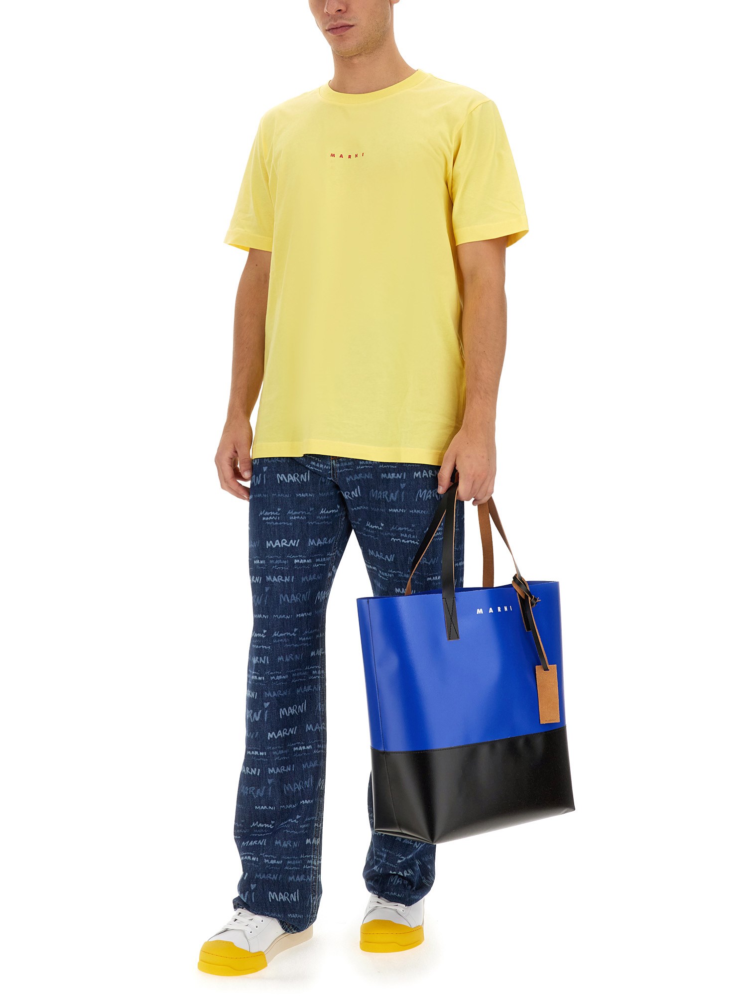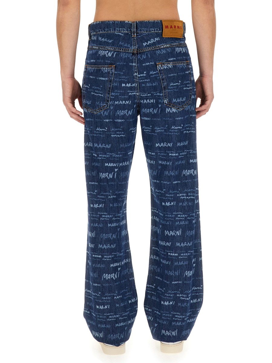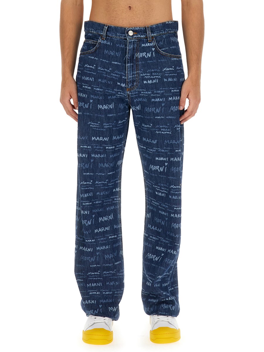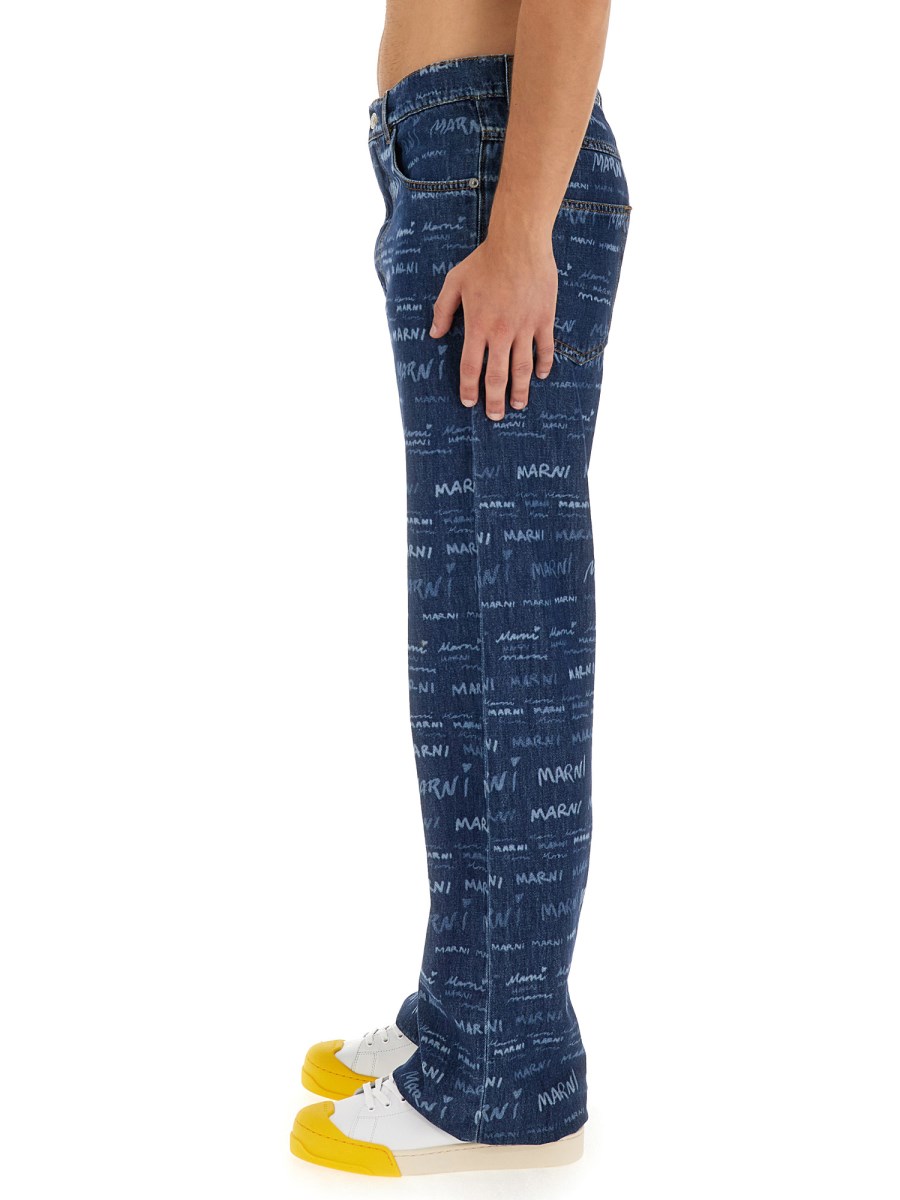 I jeans in denim di Marni sono uno stile senza tempo e l'unico paio di cui avrete bisogno per la stagione. Realizzati in materiale morbido e resistente, i jeans sono dotati di passanti per la cintura lungo la vita e di chiusura con zip e bottoni sul davanti. I jeans hanno inoltre un design a cinque tasche e un dettaglio del logo all-over.