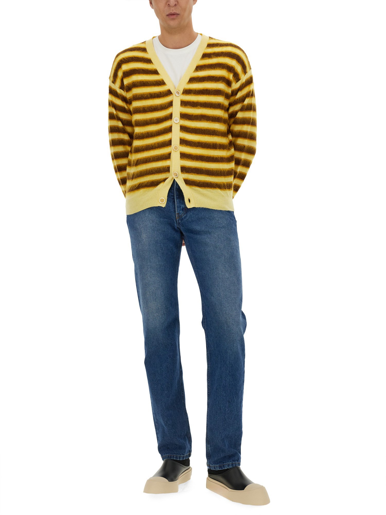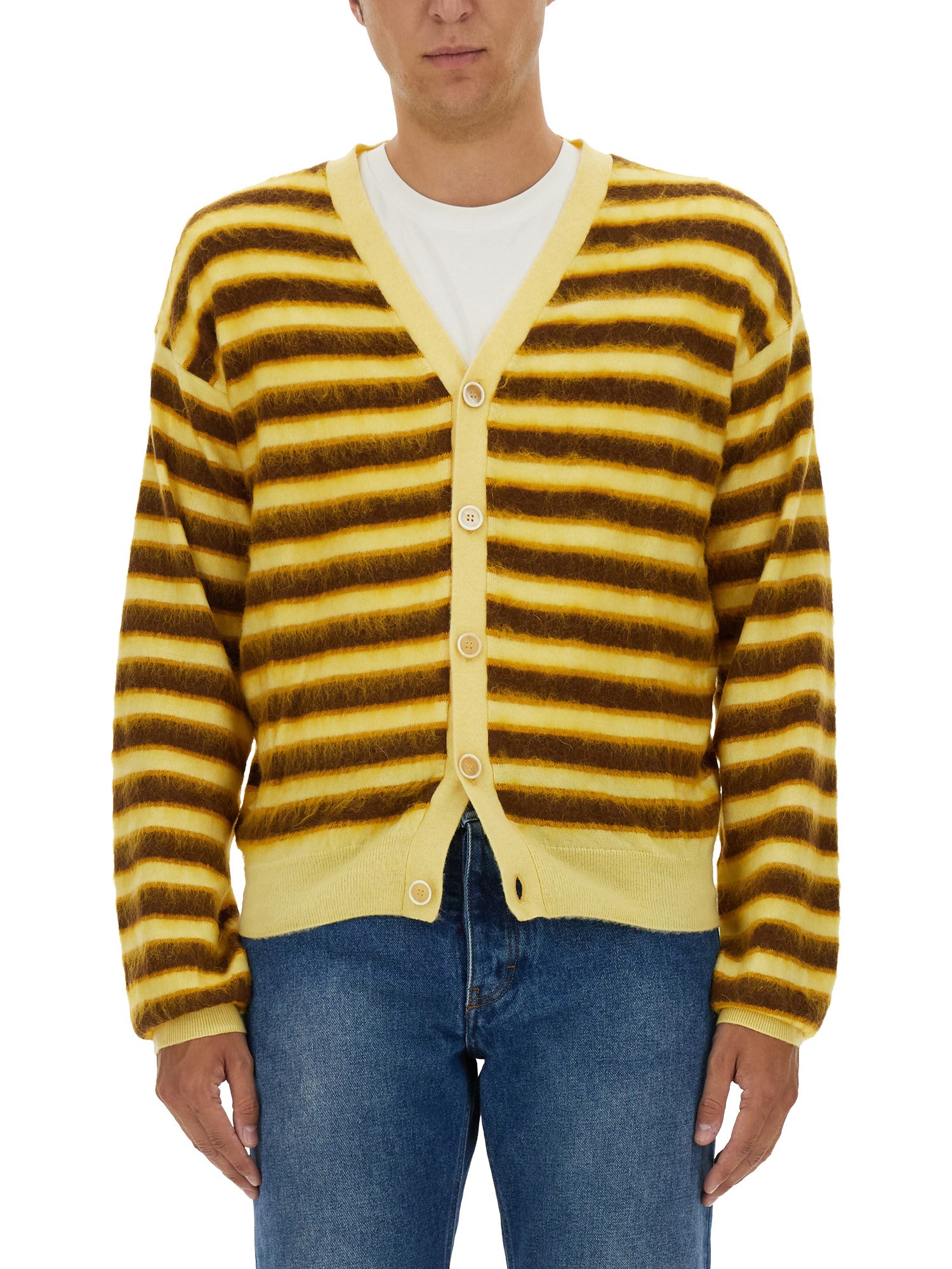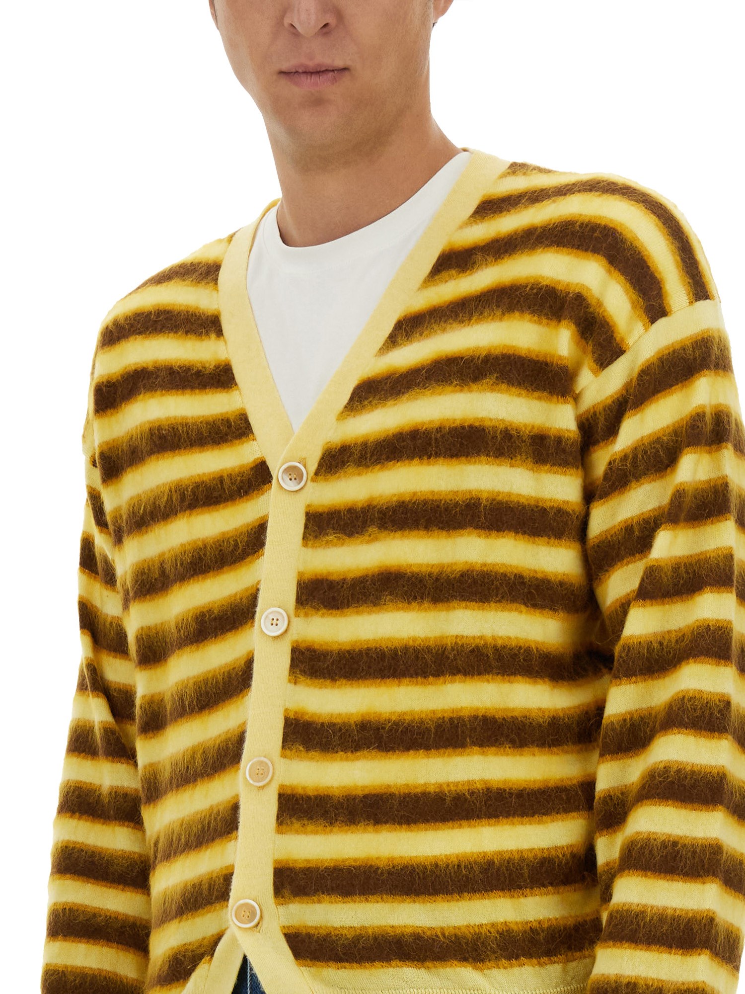 Questo cardigan a righe di Marni combina un design contemporaneo con un comfort classico, rendendolo un'aggiunta essenziale a qualsiasi guardaroba. Realizzato con materiali di alta qualità, presenta un vivace motivo a righe che aggiunge un tocco di raffinatezza e stile. Il cardigan è progettato per essere versatile, adatto sia per le occasioni casual che per quelle formali, e offre una vestibilità rilassata che garantisce facilità di movimento. Con la sua attenzione ai dettagli e la sensazione di lusso, questo capo esemplifica l'impegno di Marni per una moda innovativa.