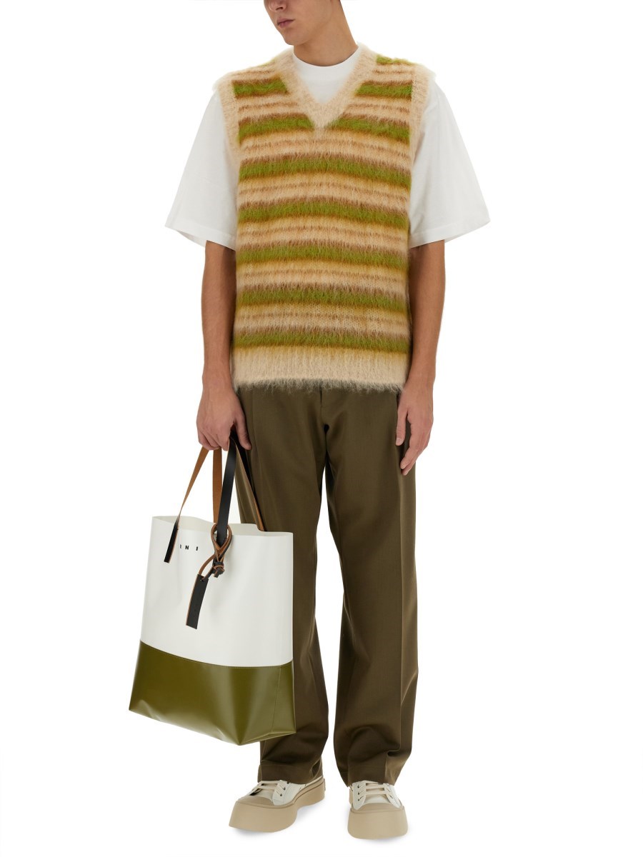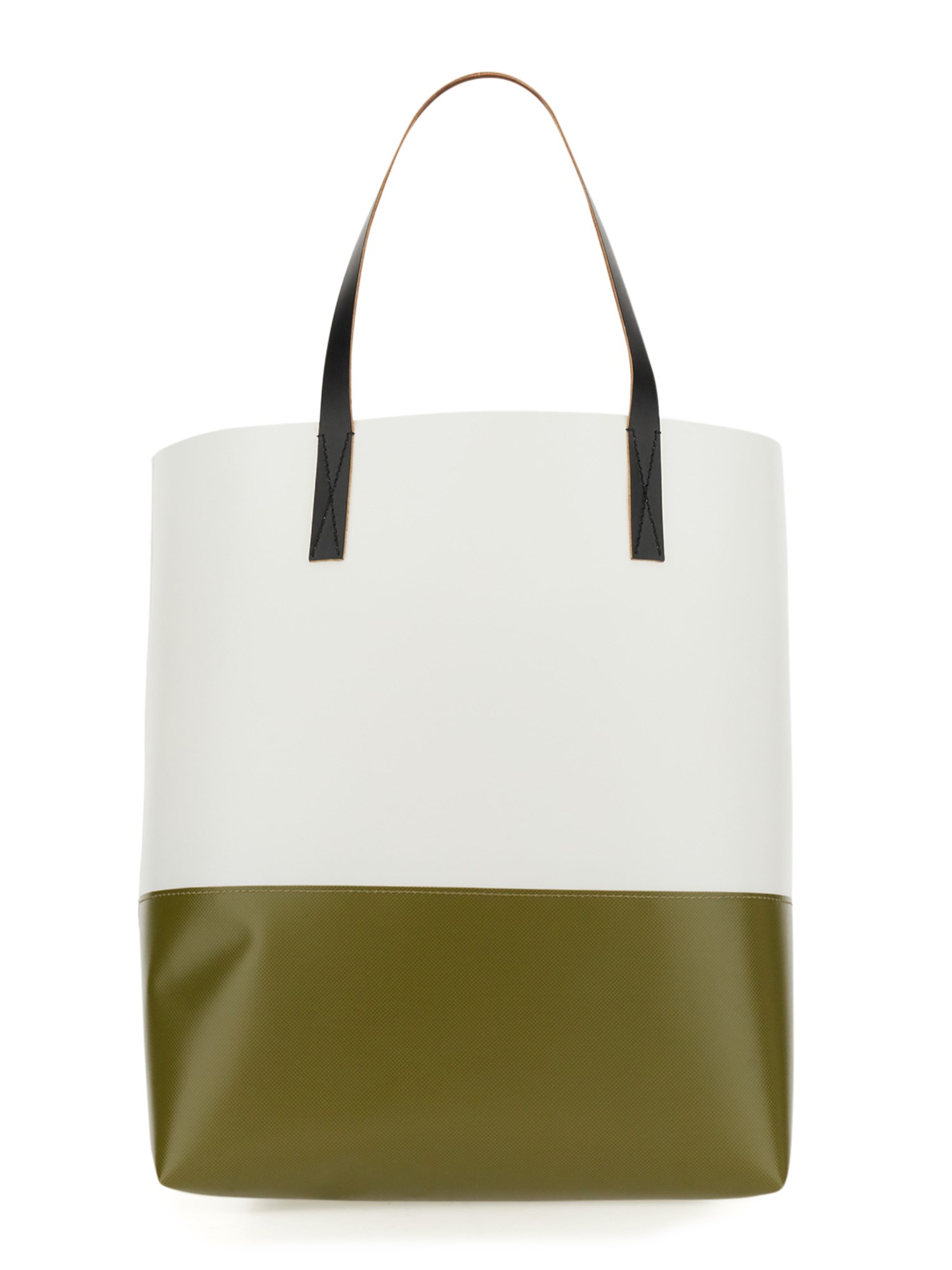 Migliorate la vostra esperienza di shopping con la shopping bag in misto poliestere a doppio manico di Marni! Realizzata con una combinazione di poliestere di alta qualità e altri materiali durevoli, questa borsa è progettata per resistere alla prova del tempo e trasportare tutti i vostri oggetti essenziali con facilità. I doppi manici offrono maggiore comfort e praticità, consentendo di portare la borsa a spalla o a mano.