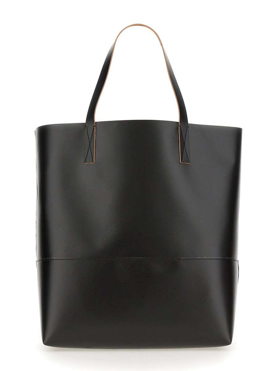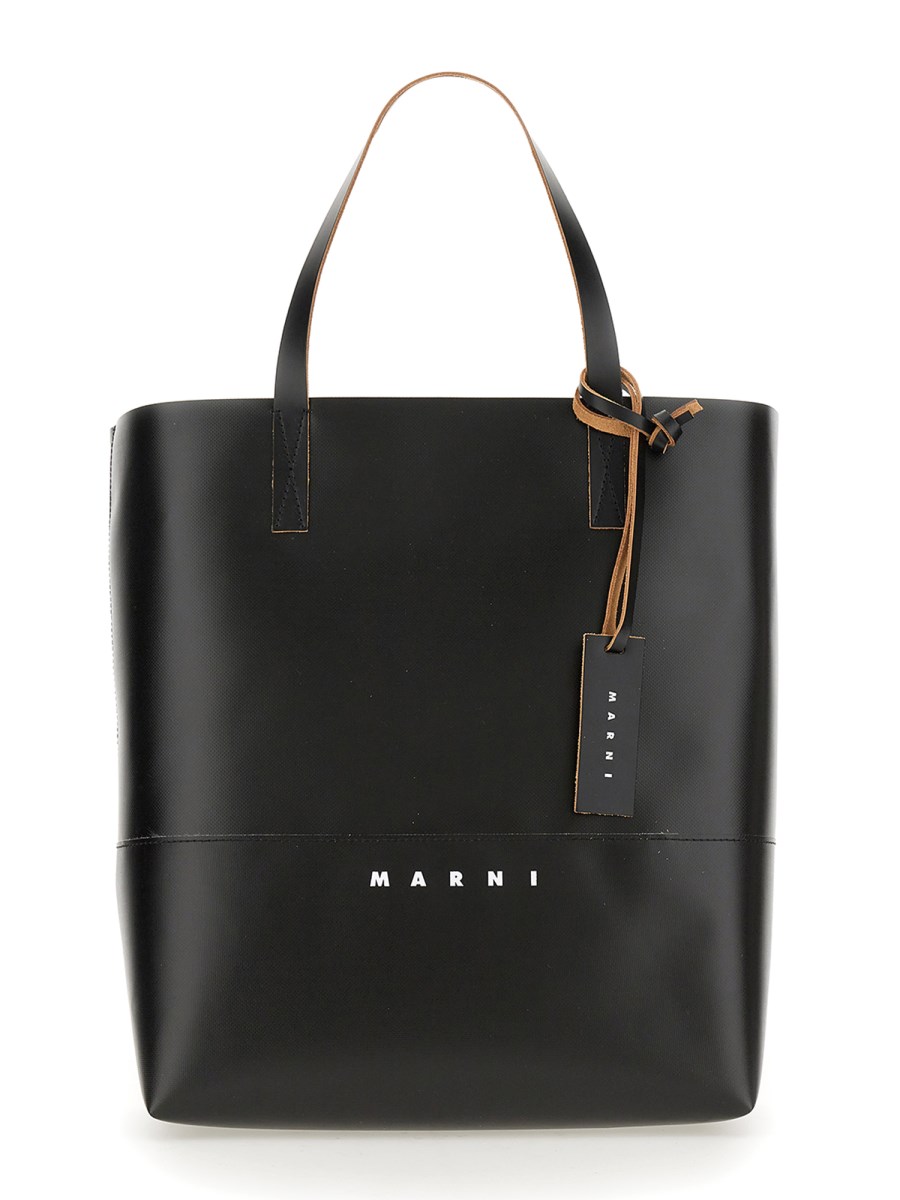 Questa versatile borsa di Marni unisce praticità e moda, diventando l'accessorio perfetto per lo shopping e le uscite quotidiane. Realizzata in resistente materiale misto poliuretano, questa borsa è progettata per resistere ai rigori dell'uso quotidiano. Il suo elegante colore nero aggiunge un tocco di raffinatezza al vostro ensemble, mentre il logo in evidenza le conferisce un look trendy e di marca.