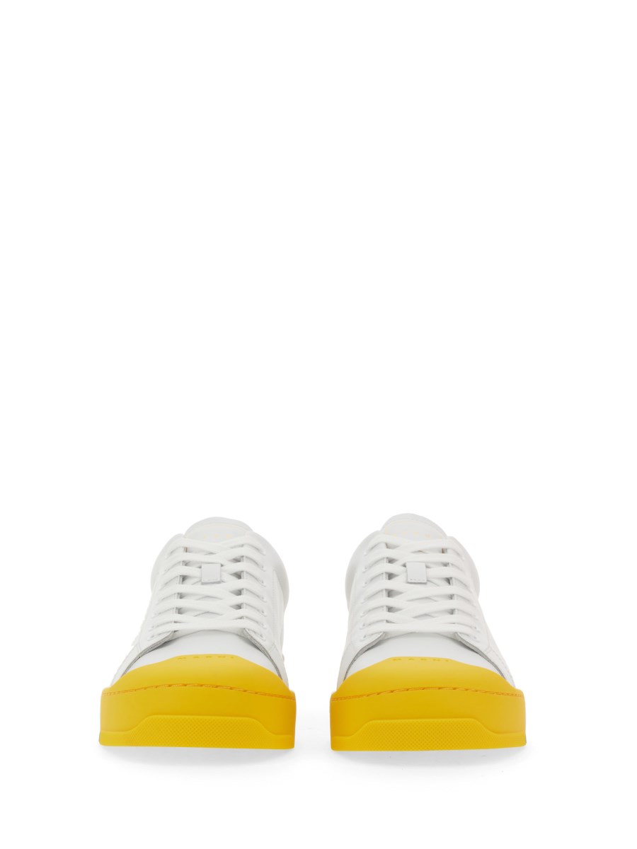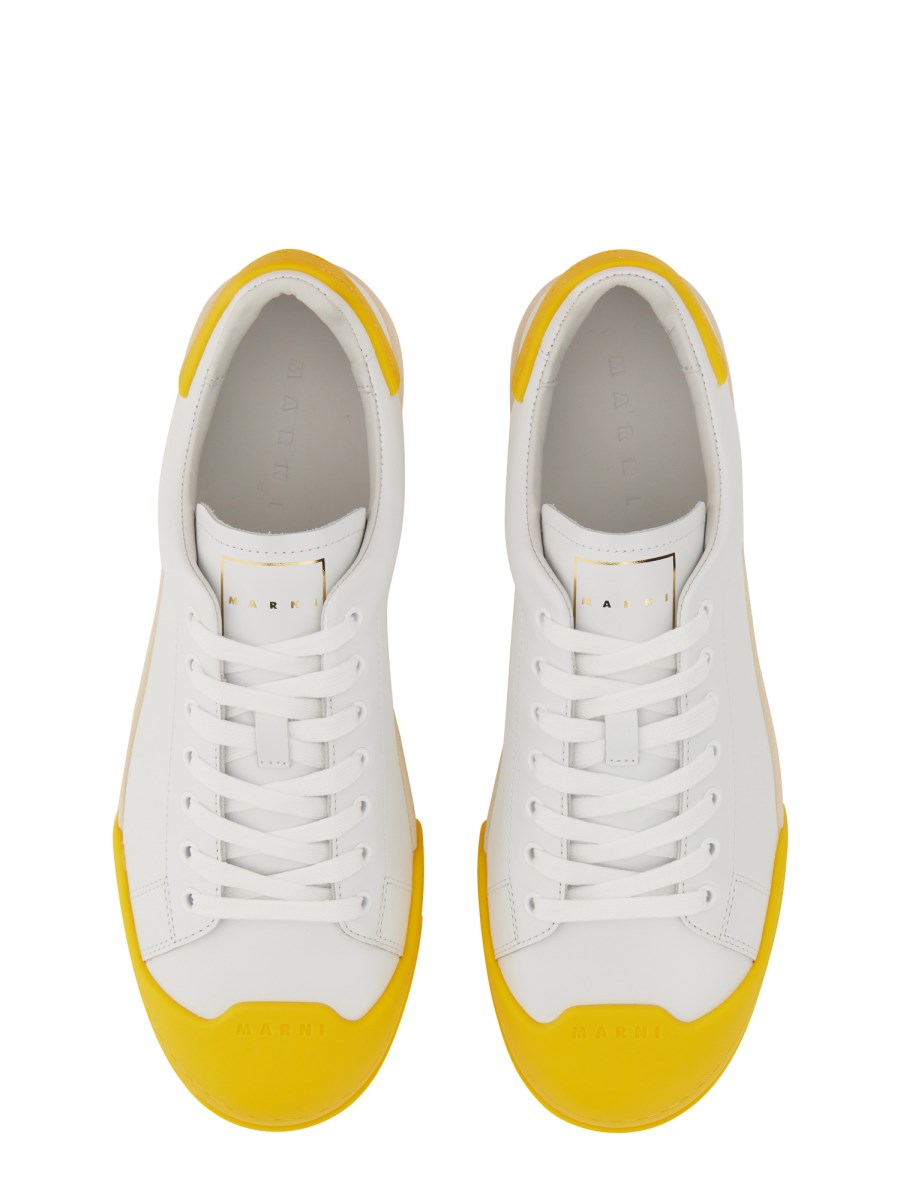 Sportive e versatili, queste sneakers di Marni si abbinano perfettamente a una varietà di outfit. Realizzate in pelle e gomma, hanno una chiusura con lacci e una suola in gomma. Questa sneaker piatta con suola in gomma e chiusura a lacci, con tomaia in pelle e paraurti, è perfetta per chi desidera un paio di scarpe casual ma funzionali.