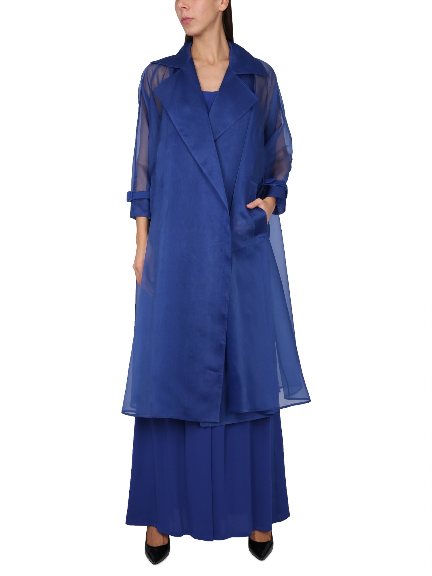 Un classico dell'abbigliamento femminile Max Mara, lo spolverino da smoking in organza di seta con revers a lancia è l'opzione perfetta per un matrimonio, un evento in cravatta nera o un'occasione speciale. Elegante e disinvolto, lo spolverino con revers a lancia e cintura in vita in organza di seta è un'ottima opzione per un appuntamento galante o una serata divertente. Questo capo versatile può essere indossato con una camicia abbottonata e pantaloni chino, oppure può essere abbinato a un abito per creare un look chic.