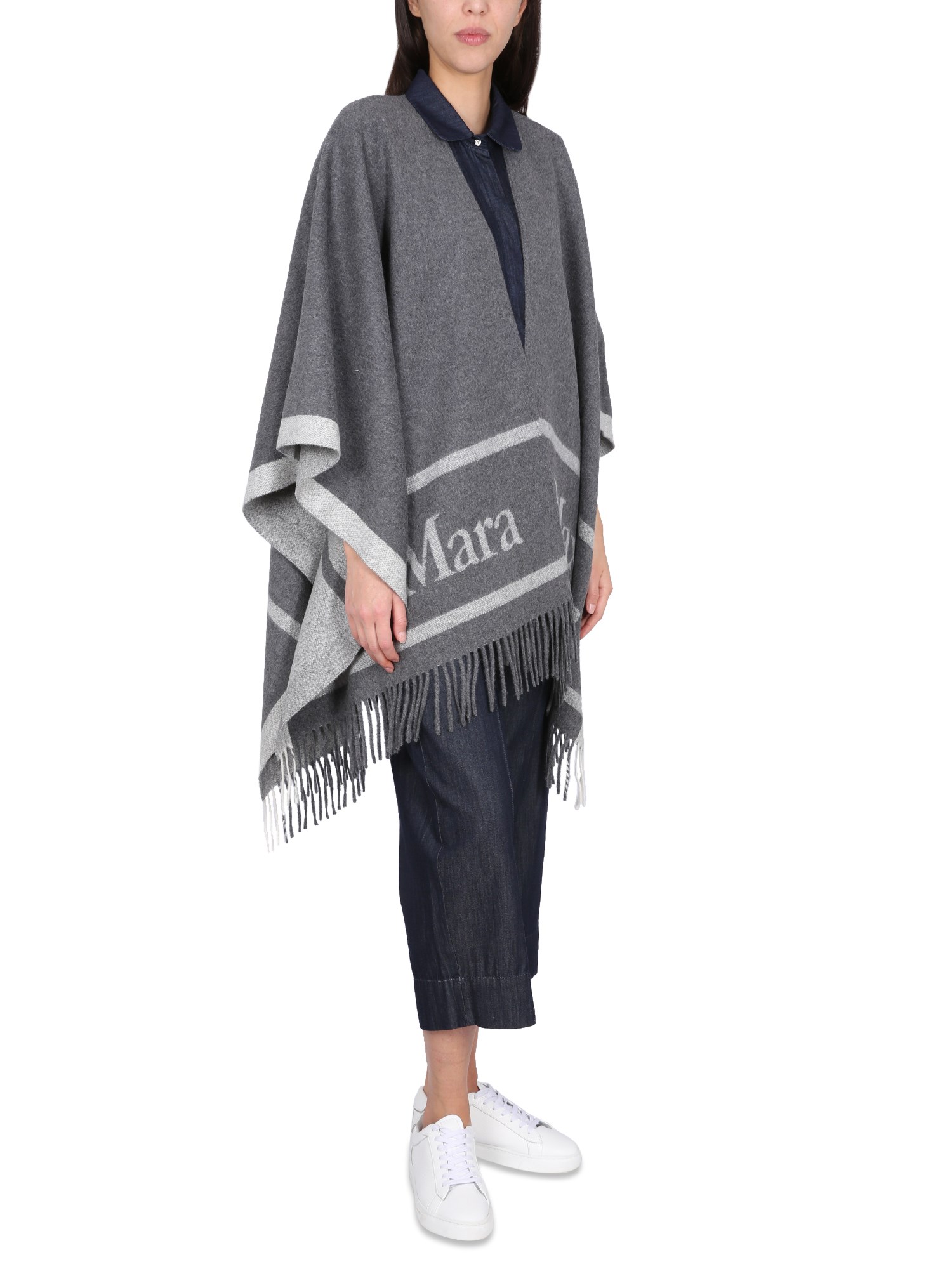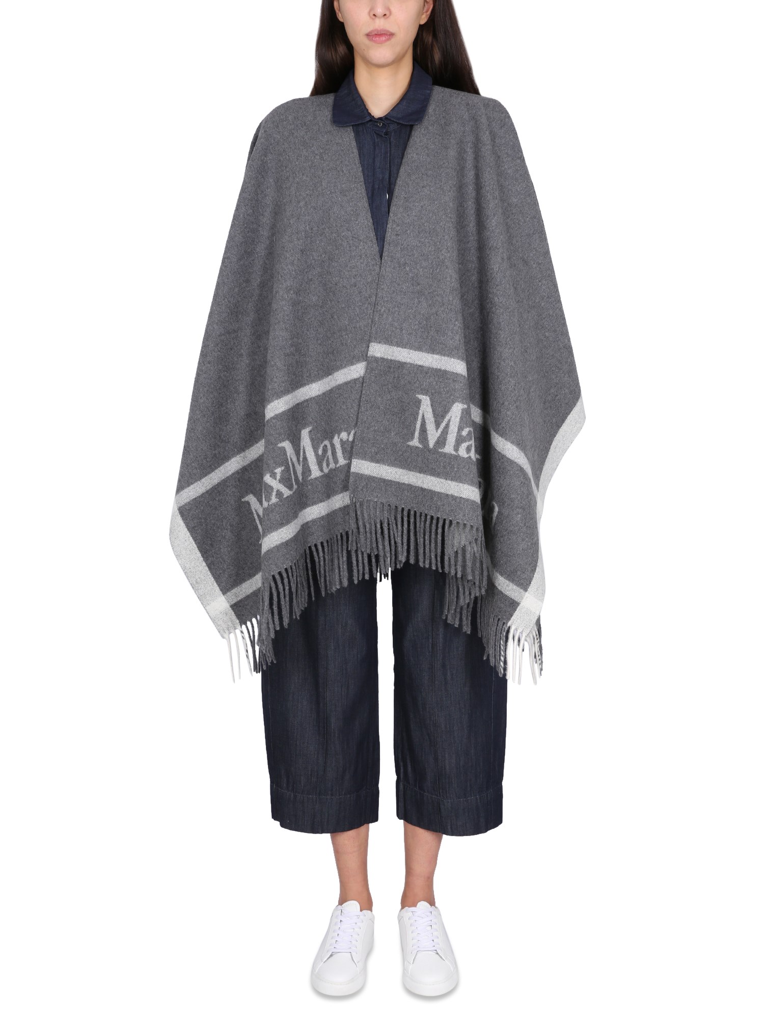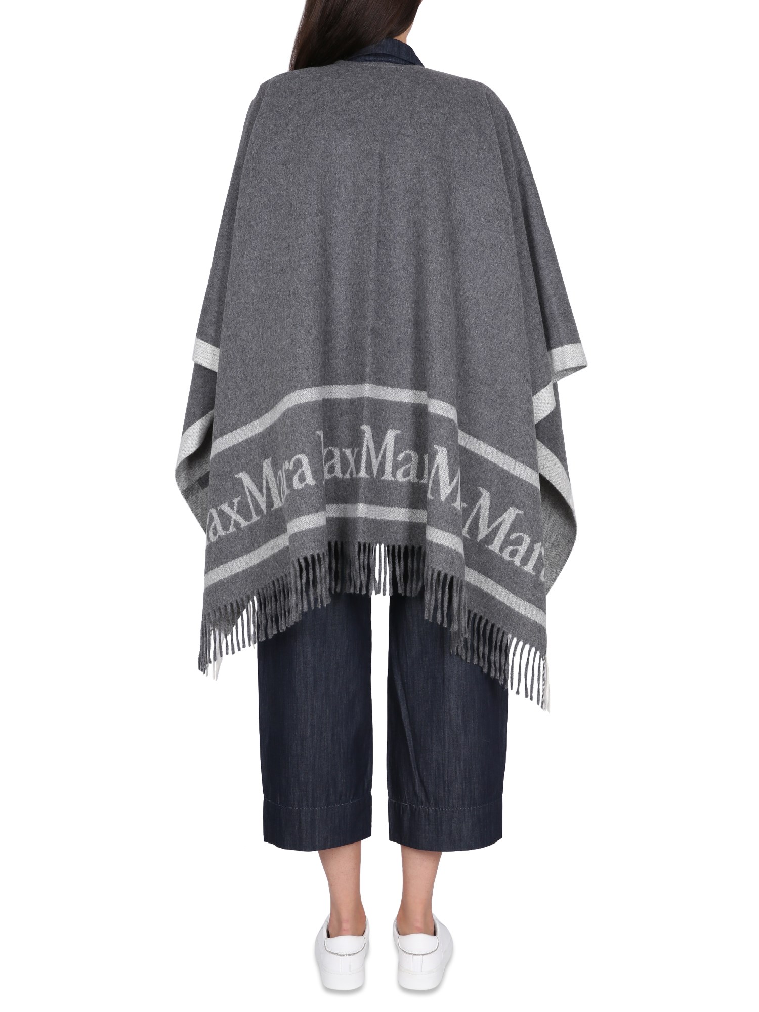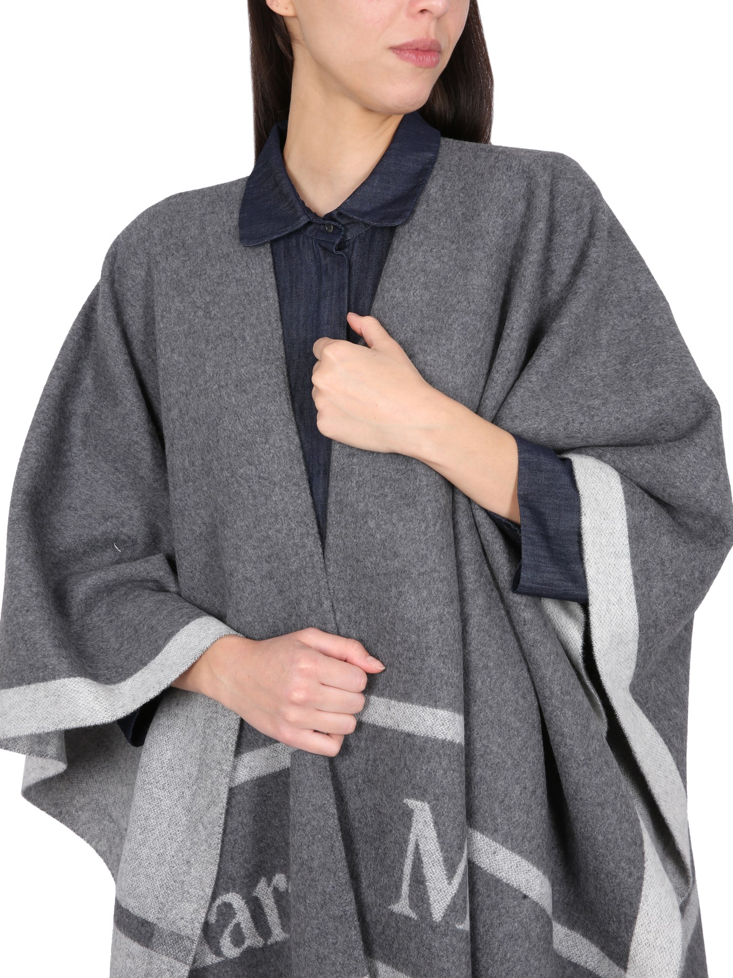 Bellissima mantella in lana di Max Mara, con un look in pelle rovinata e un grande logo ricamato in oro sul retro. Questo capo ha una lunghezza che arriva fino alle ginocchia. È realizzata in lana morbidissima ed è perfetta per ogni occasione. La mantella in lana permette di muoversi con facilità.