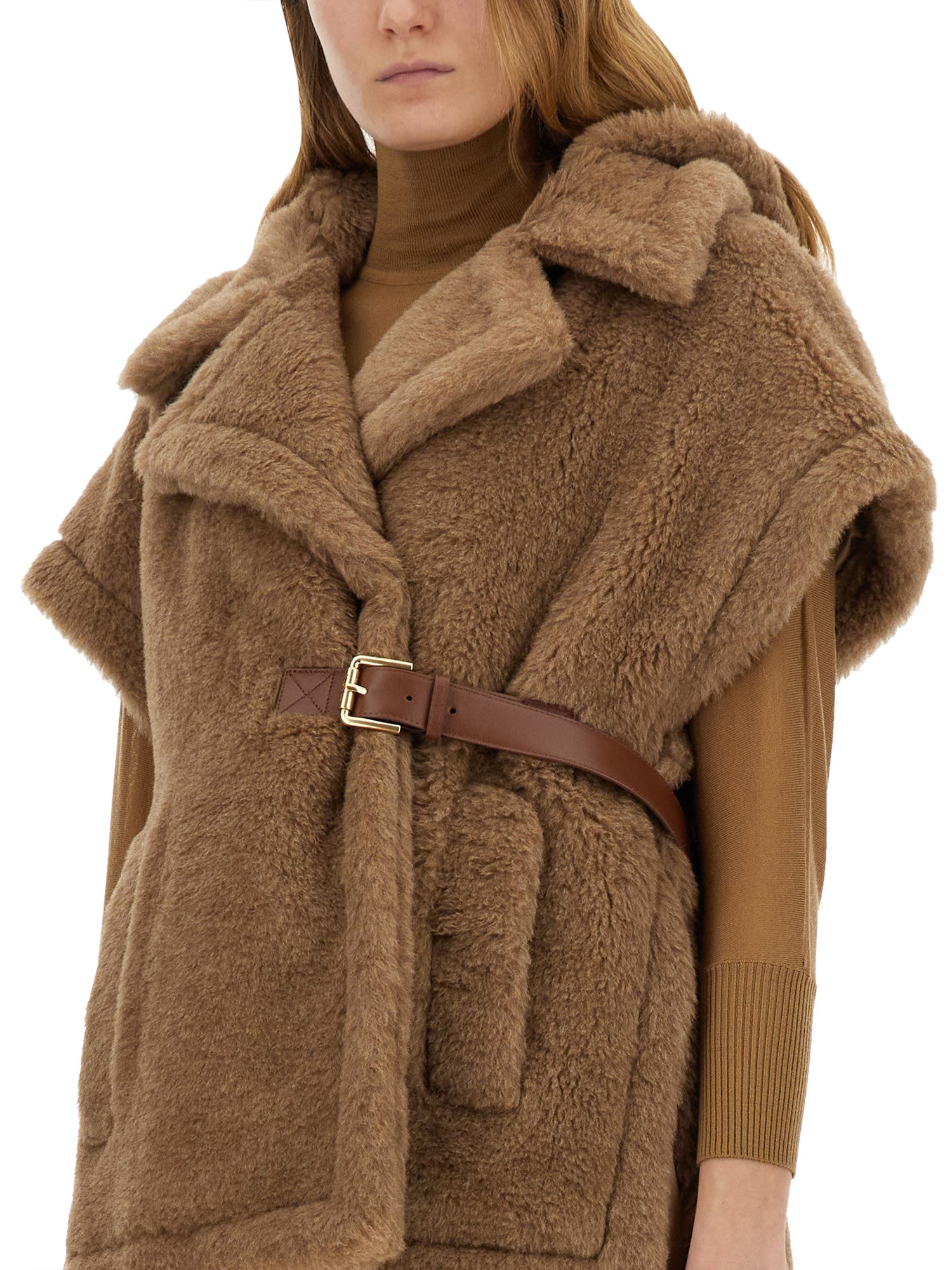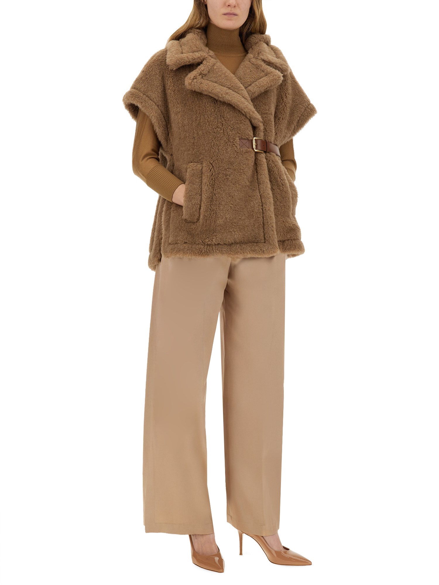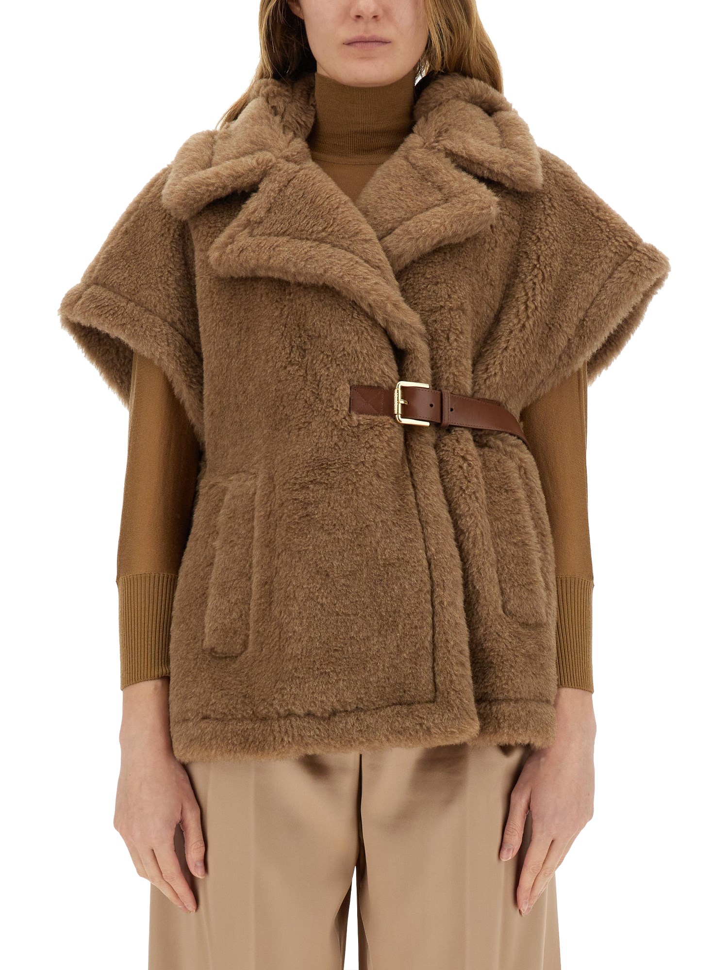 - 63% ALPACA 26% CASHMERE 11% SILK- LA MODELLA É ALTA 180 CM E INDOSSA LA TAGLIA S-M