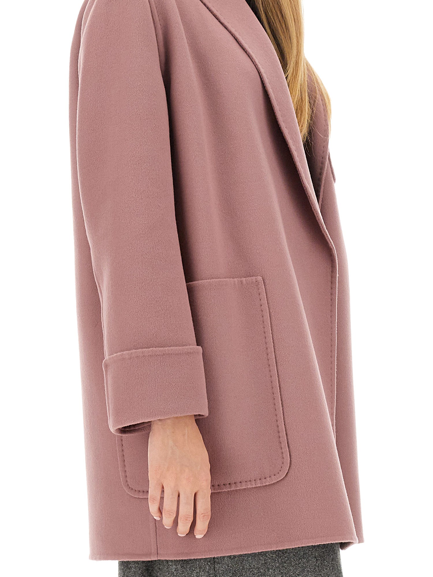 Giacca corta e decostruita in lussuoso tessuto doppio di lana e cashmere cucito a mano, caratterizzata da una silhouette a portafoglio con collo a scialle, tasche applicate sul davanti e un taschino sul petto. Le maniche a giro con spalle scese hanno polsini con un piccolo spacco. Rifinito con impunture e una cintura abbinata per accentuare il punto vita.