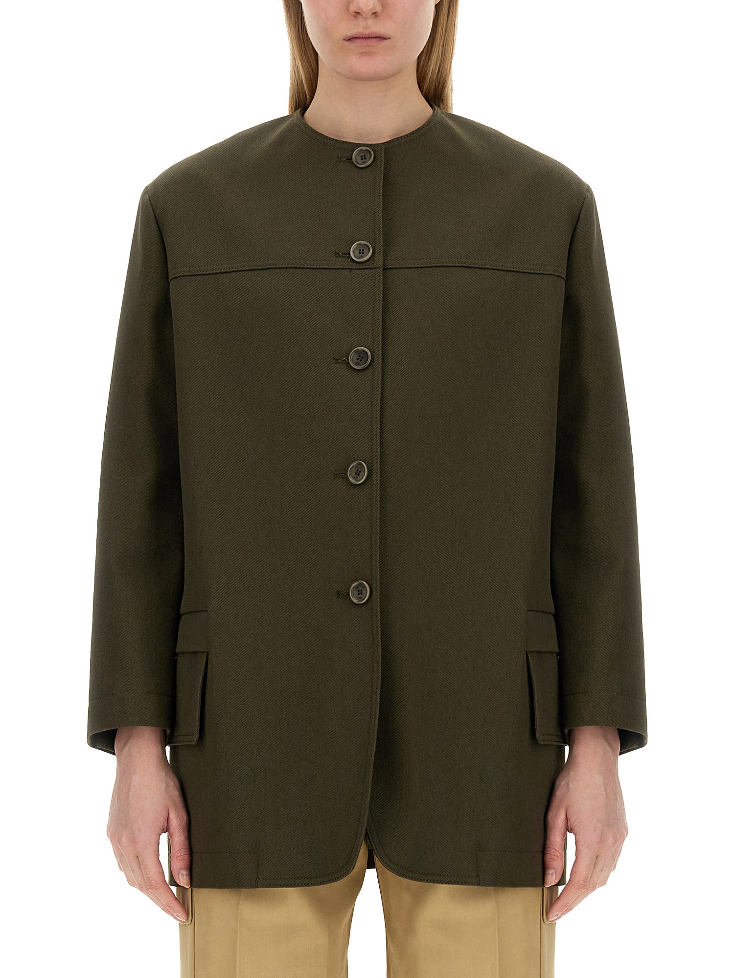 Questa giacca di Max Mara è l'aggiunta perfetta al vostro guardaroba per ogni occasione. Il colore verde oliva aggiunge un tocco di raffinatezza, mentre la chiusura frontale con bottoni assicura una vestibilità sicura e confortevole. Realizzata in cotone pregiato, offre traspirabilità e resistenza, rendendola ideale per un uso duraturo.