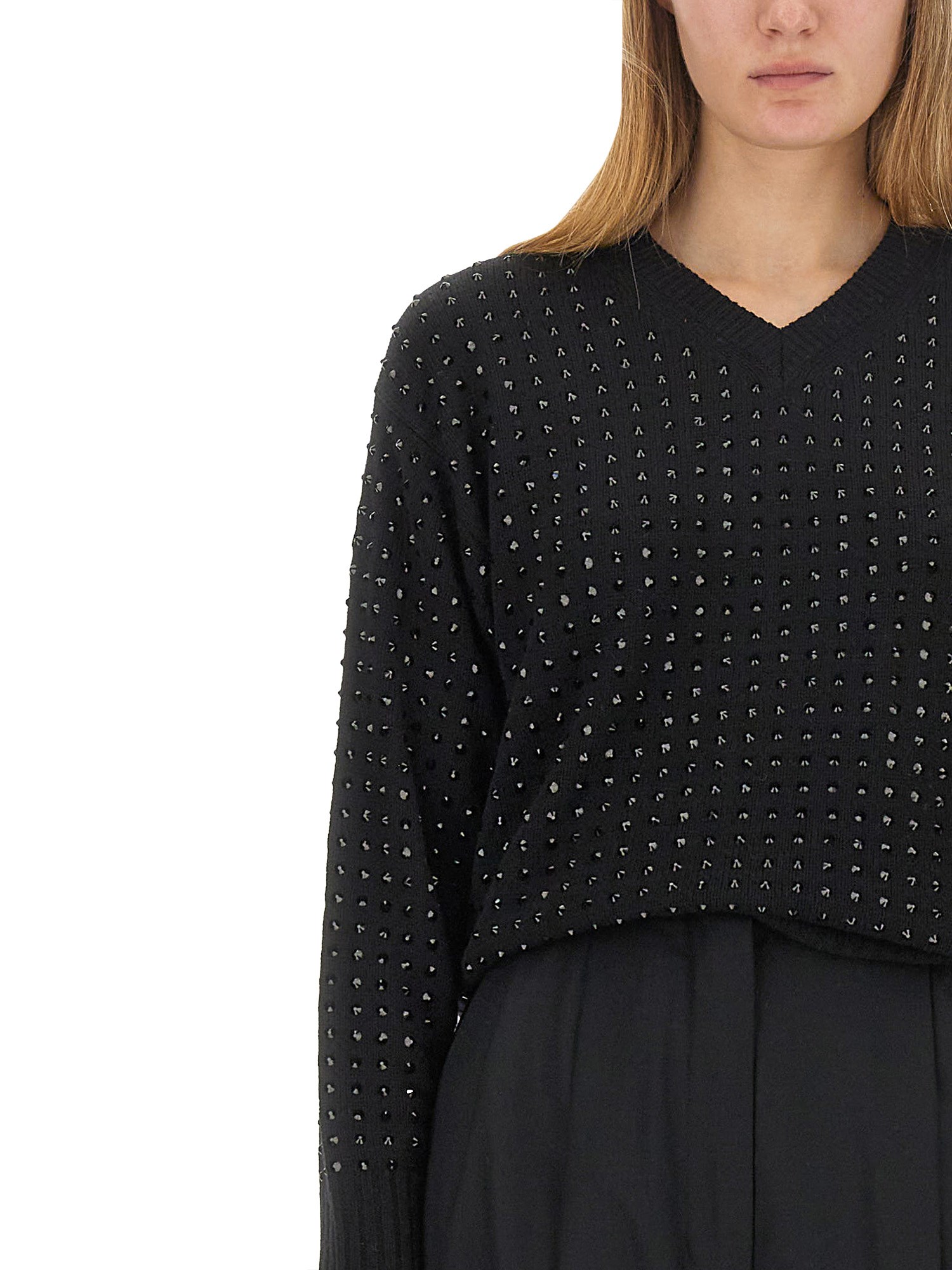 Questo lussuoso maglione di Max Mara presenta un'elegante scollatura a V che si adatta senza sforzo a qualsiasi corporatura, esaltando il vostro fascino femminile. Realizzato con lana di altissima qualità, offre un calore e un comfort eccezionali per tenervi al riparo durante i mesi più freddi.