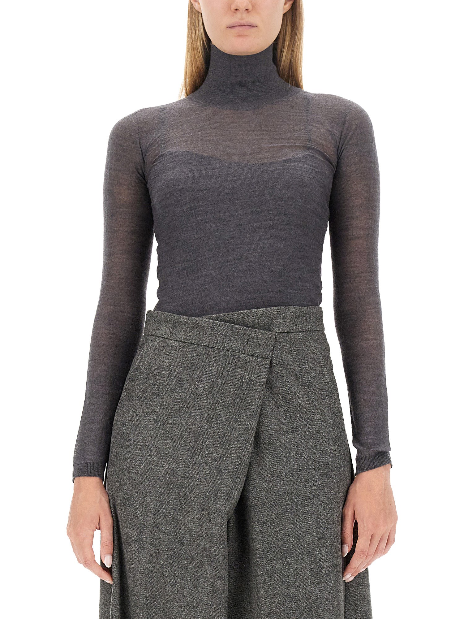 Rimanete al caldo e alla moda con questo lussuoso dolcevita grigio in lana vergine di Max Mara. Realizzato con lana vergine della migliore qualità, questo dolcevita offre un comfort e un isolamento imbattibili durante i mesi più freddi. Il classico colore grigio aggiunge un tocco di versatilità, rendendolo facile da abbinare a qualsiasi outfit.