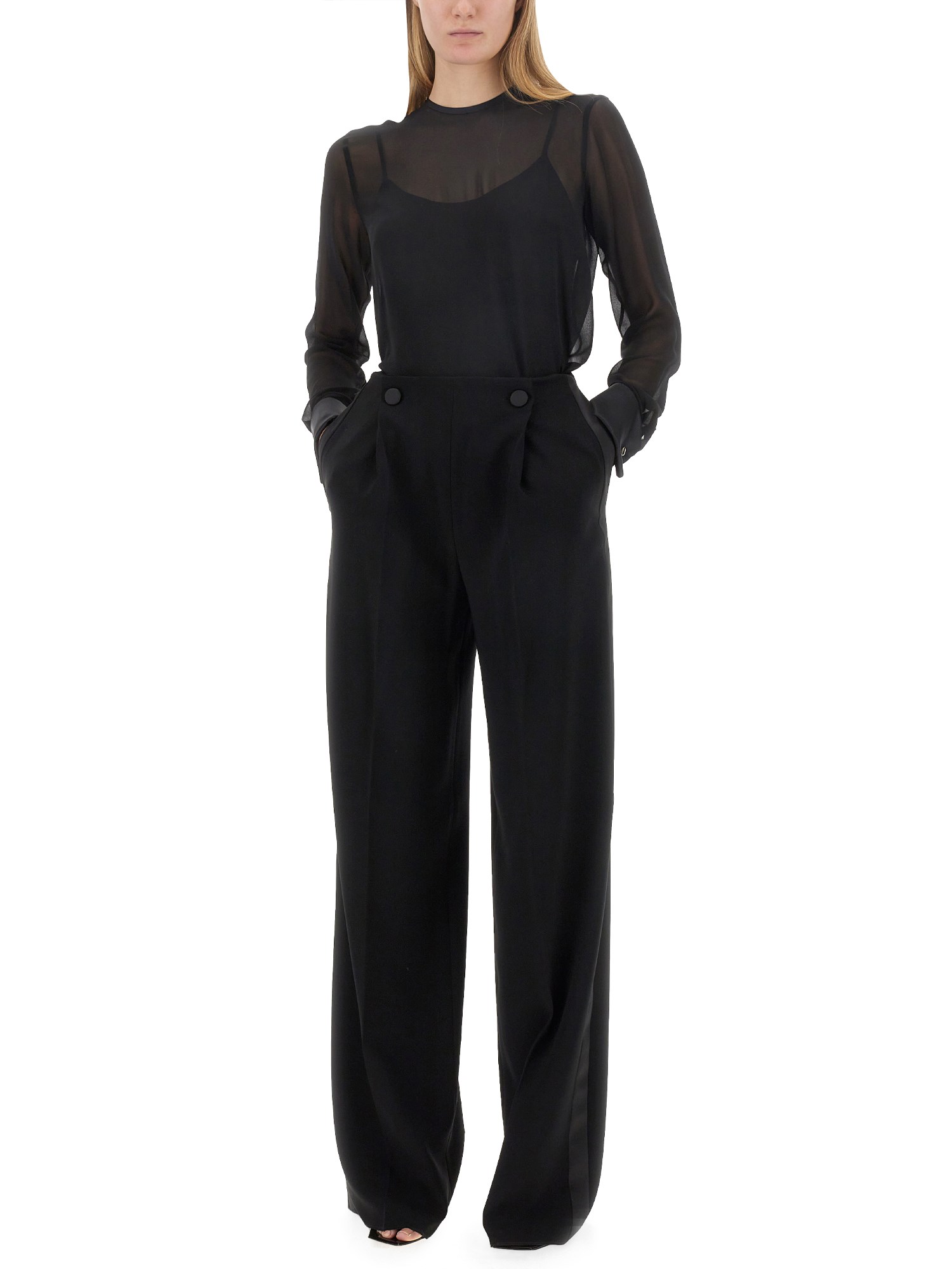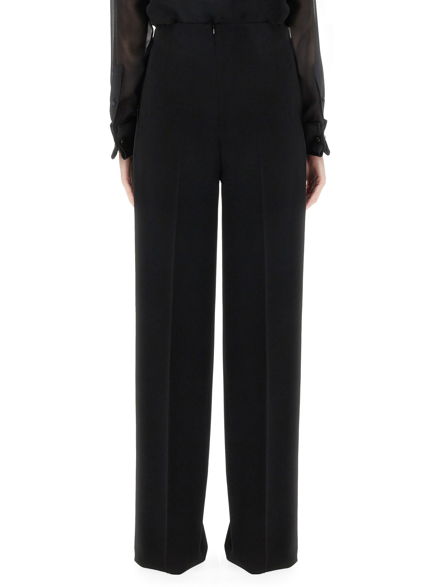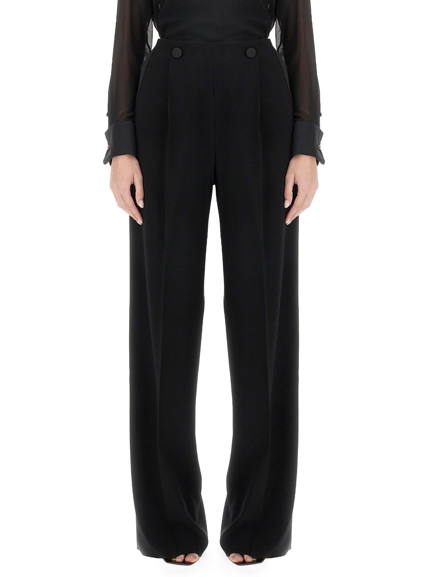 I pantaloni Max Mara offrono comfort e resistenza, assicurando un'aggiunta duratura alla vostra collezione di abbigliamento. La chiusura con bottoni e cerniera offre un'allacciatura sicura e comoda, che consente di indossarli e toglierli facilmente. Il colore nero aggiunge un elemento di versatilità, rendendo questi pantaloni adatti sia per occasioni formali che casual. La vestibilità lunga e dritta di questi pantaloni crea una silhouette elegante e lusinghiera, perfetta per chi preferisce un look più sartoriale.