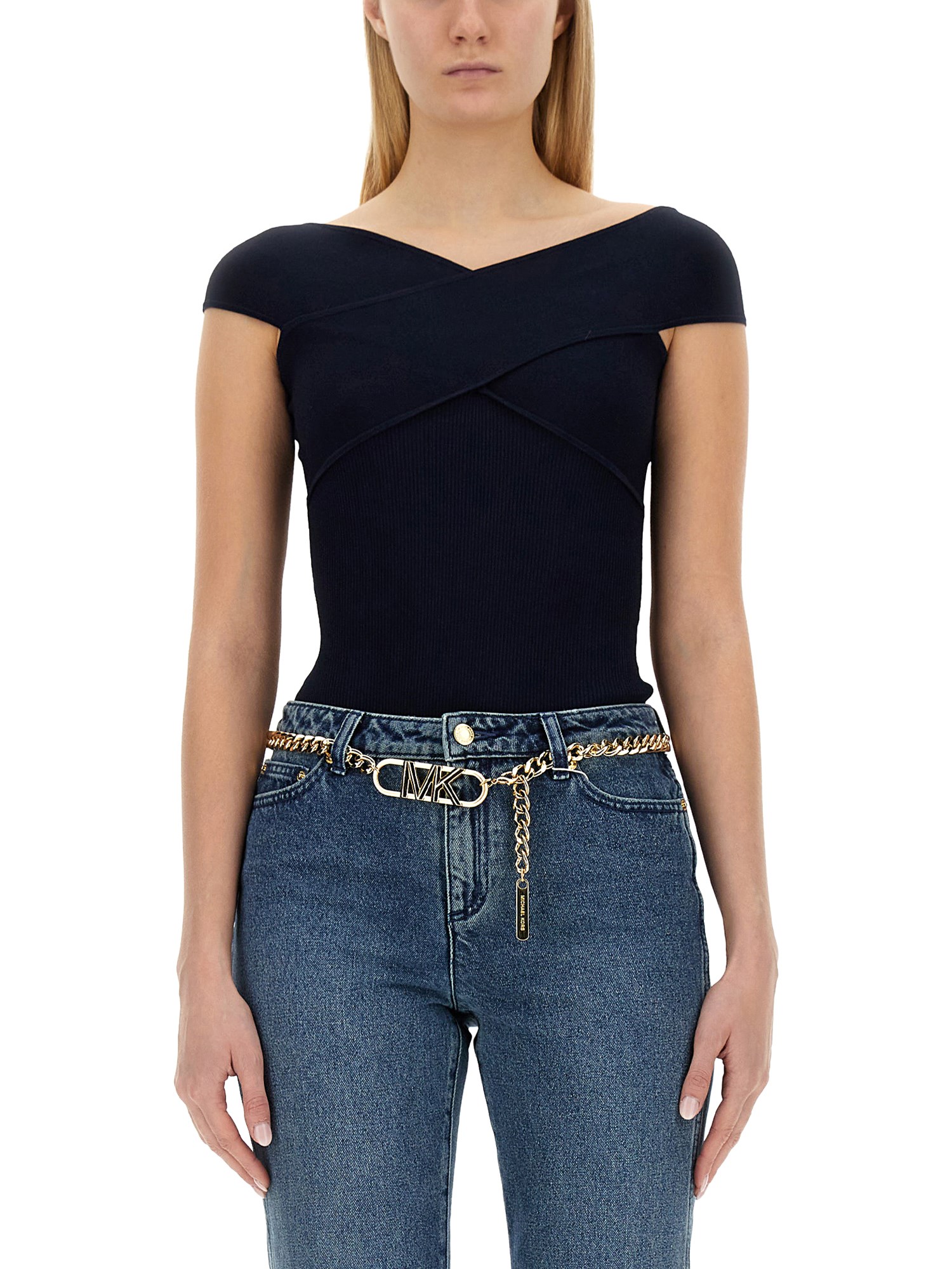 Vi presentiamo il body in viscosa lavorato a maglia con scollo a V e maniche a cappuccio di Michael by Michael Kors, l'aggiunta perfetta al vostro guardaroba per un look elegante e raffinato. Realizzato in tessuto di viscosa di alta qualità, questo body offre una vestibilità comoda ed elastica che abbraccia le vostre curve nei punti giusti.