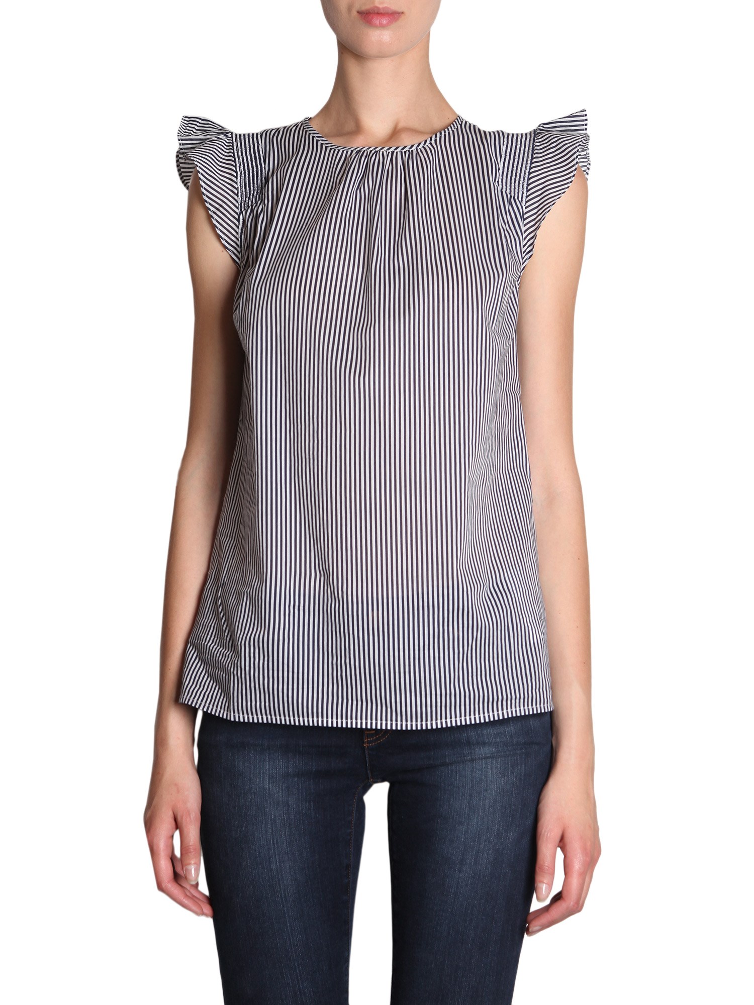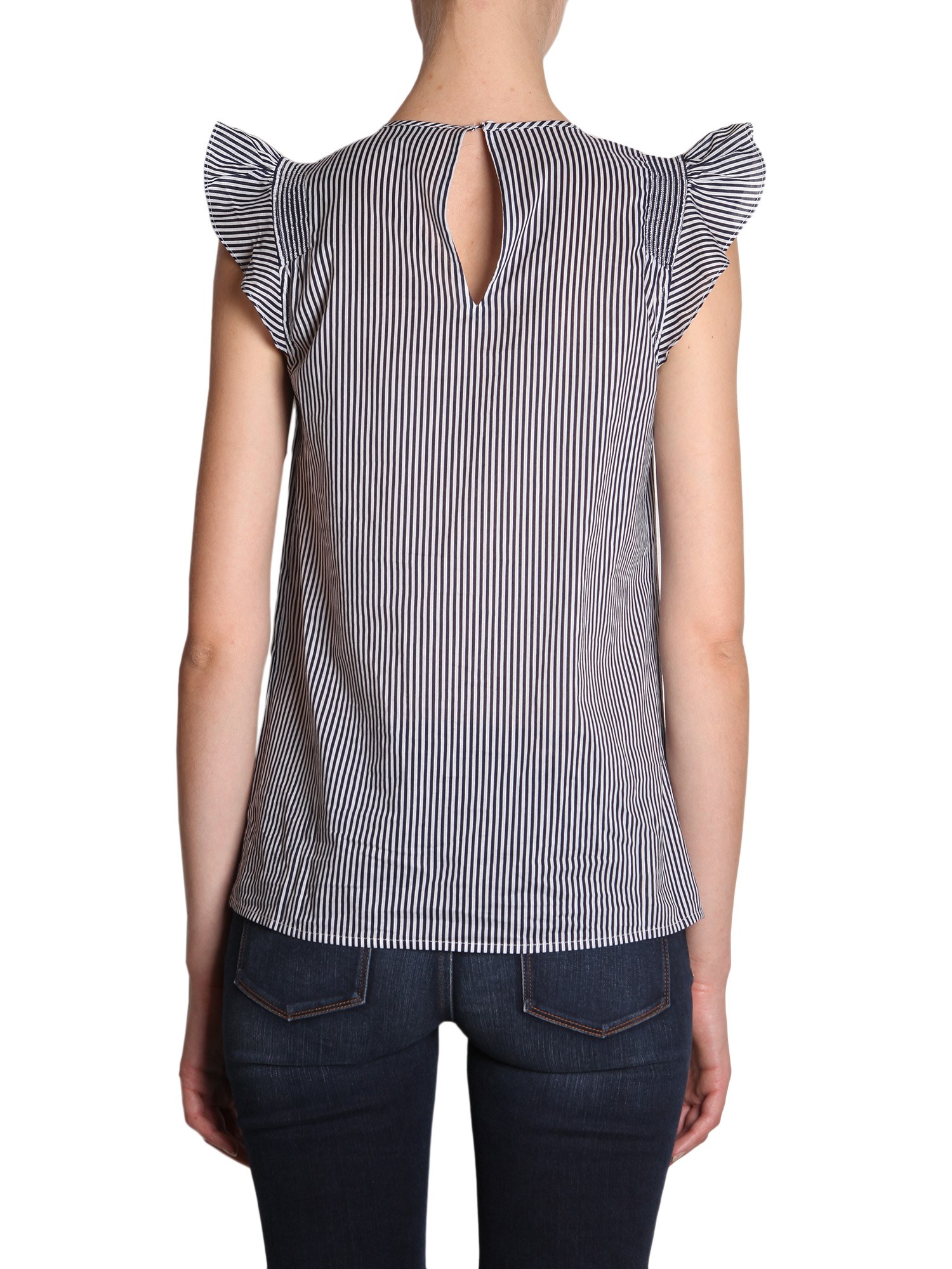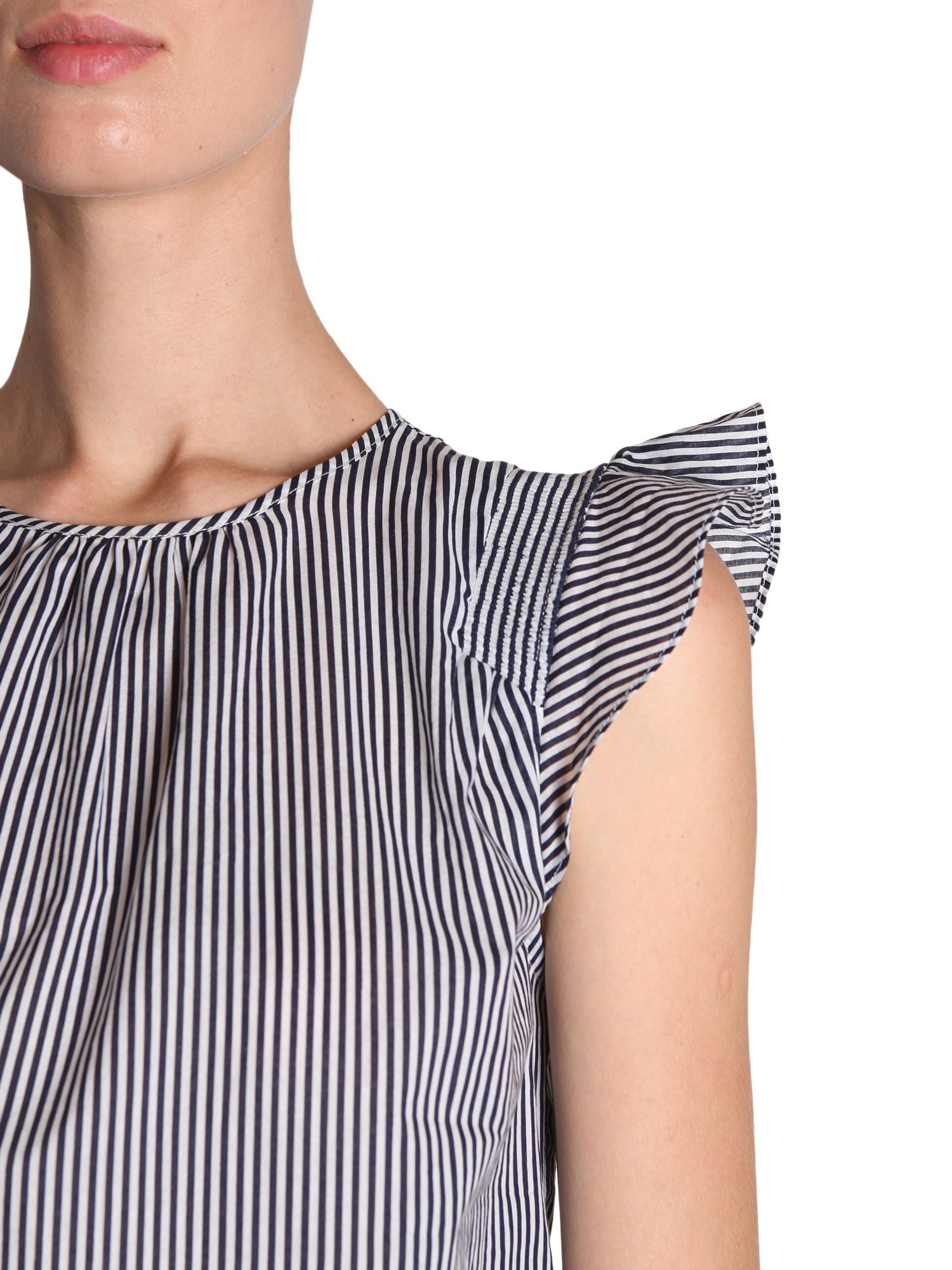 - GIROCOLLO- MANICHE AD ALETTA CON RUCHES - DETTAGLIO PUNTO SMOCK- CHIUSURA A GOCCIA CON BOTTONE SUL RETRO- MOTIVO A RIGHE SU TUTTA LA SUPERFICIE- 37% POLIESTERE, 34% COTONE, 26% NYLON, 3% ELASTAN- LA MODELLA INDOSSA LA TAGLIA S
