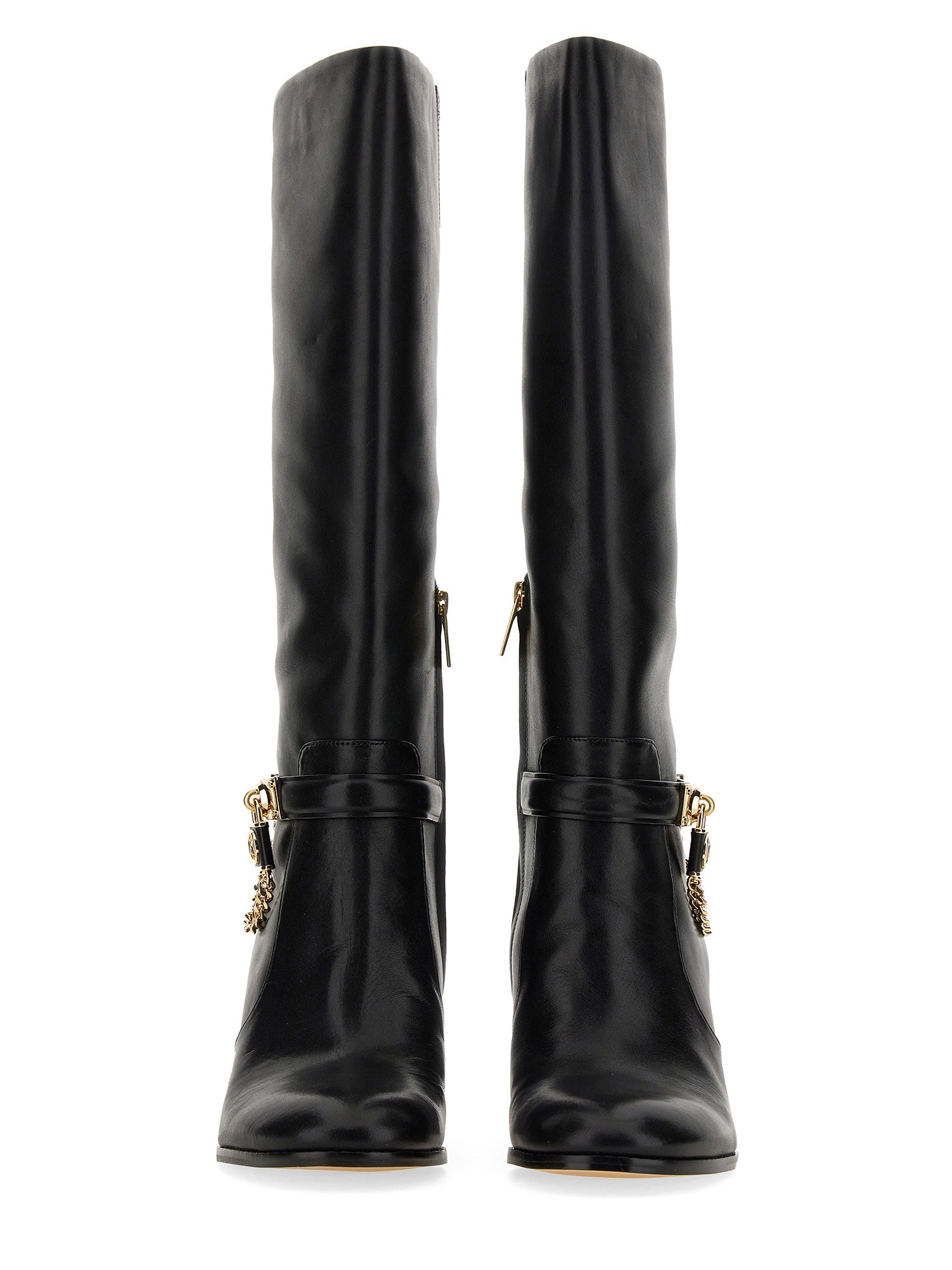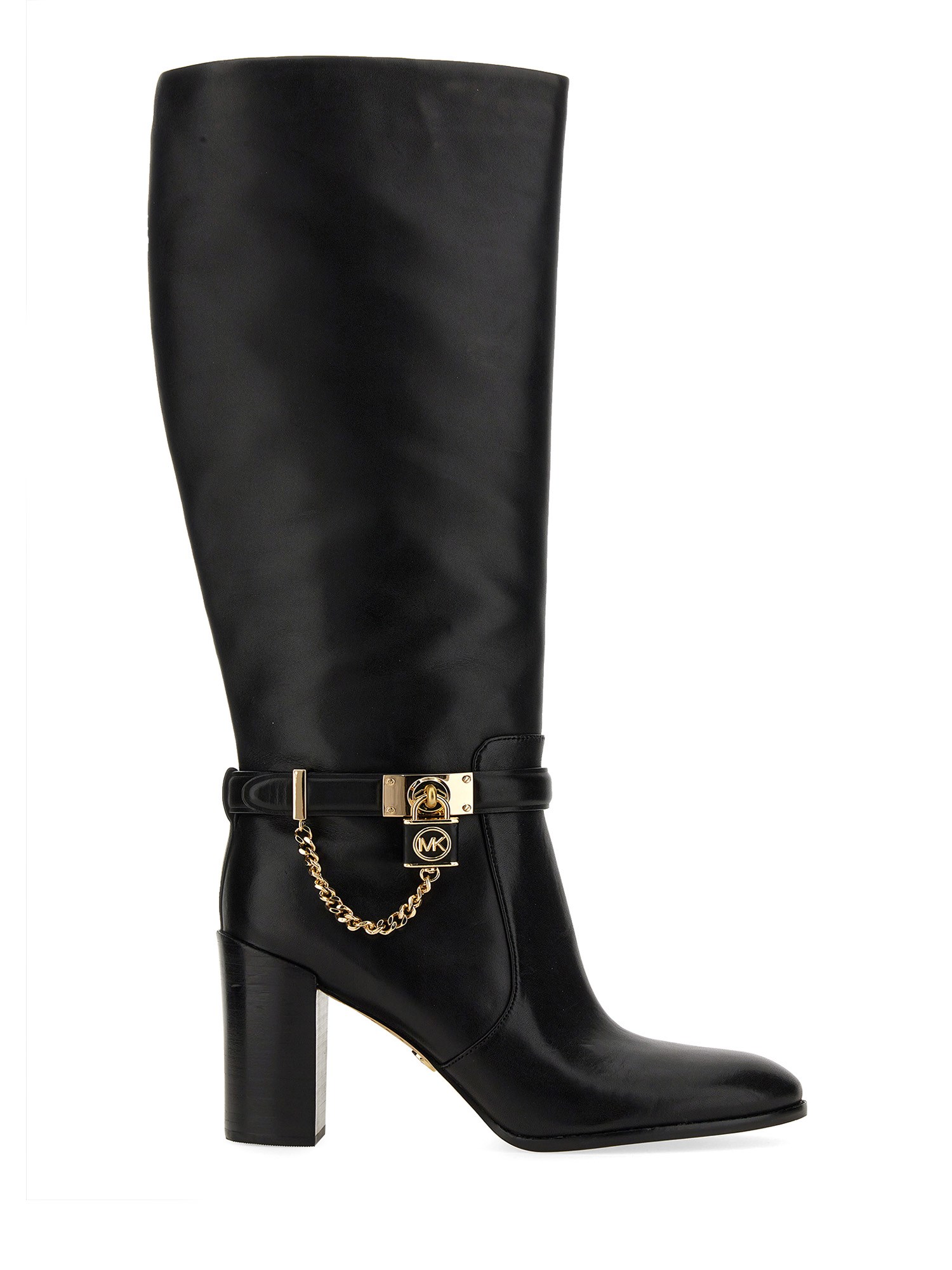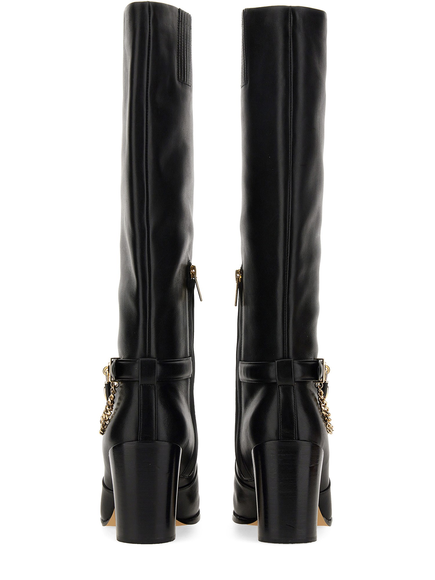 L'Hamilton racchiude lo stile western in modo così chic. Poggiato su un tacco a blocco che offre altezza e stabilità, questo paio alto fino al ginocchio è realizzato in pelle liscia e dettagliato con un lucchetto scintillante. Da indossare con abiti di lunghezza midi o su un paio di jeans skinny.