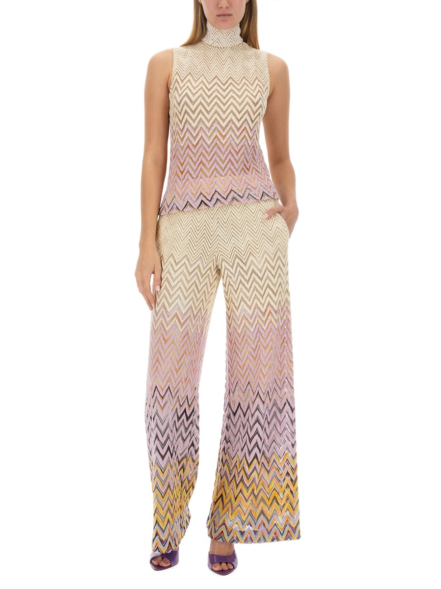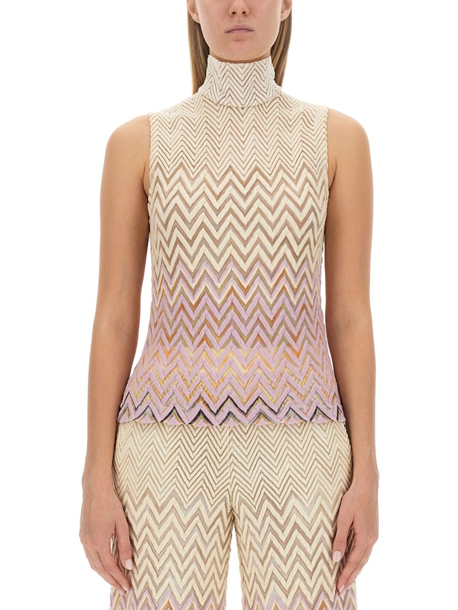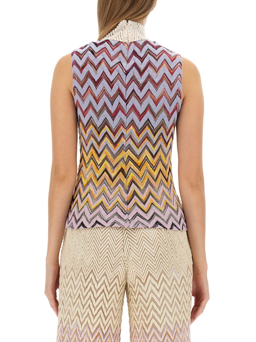 Elevate il vostro gioco di moda con il top Missoni con lavorazione Raschel, una vera incarnazione di stile e grazia. Questo top dal design intricato è il risultato della dedizione di Missoni a garantire l'eccellenza in ogni dettaglio. La composizione leggera ma resistente del tessuto assicura una vestibilità confortevole senza compromettere la qualità.