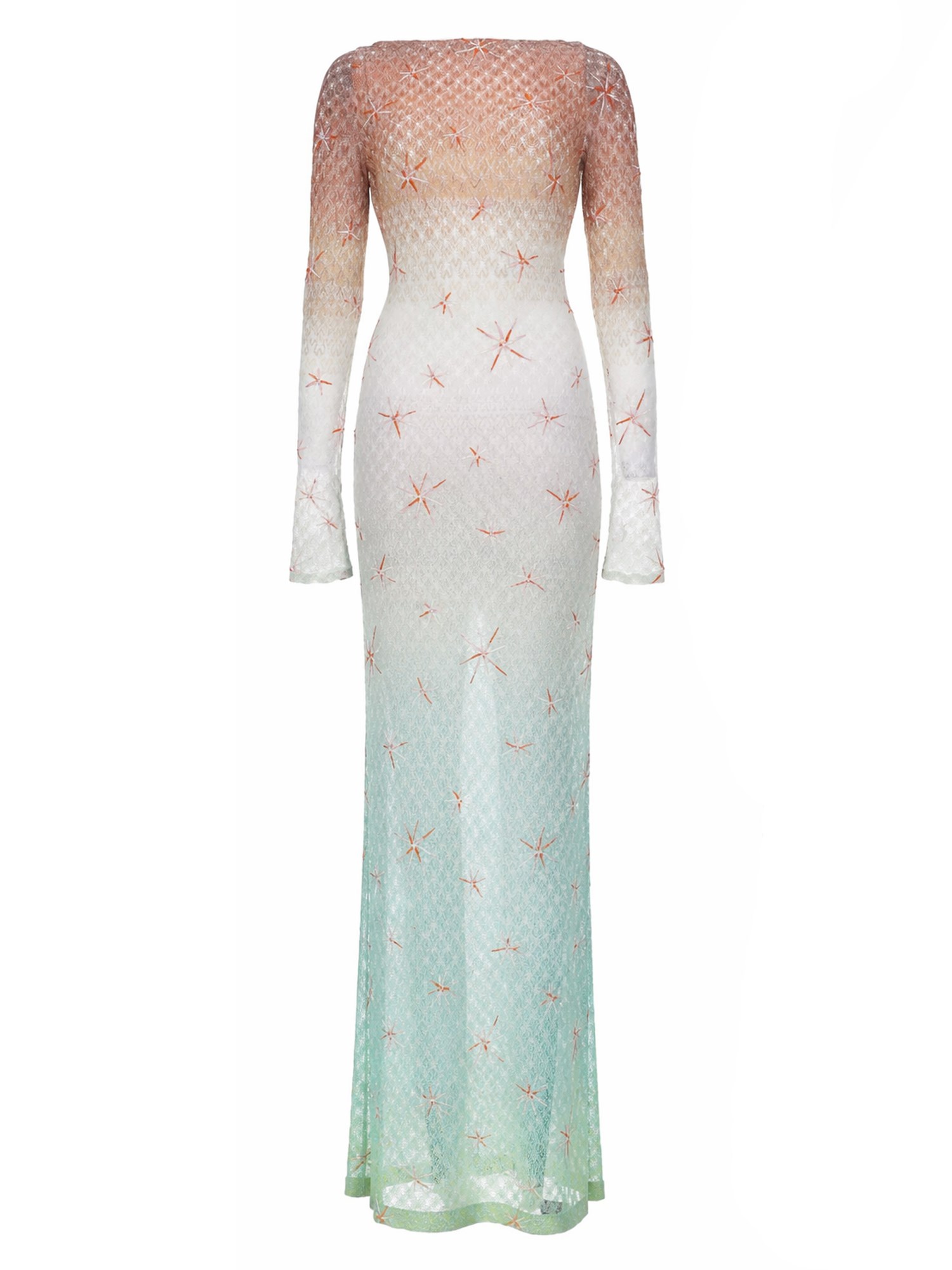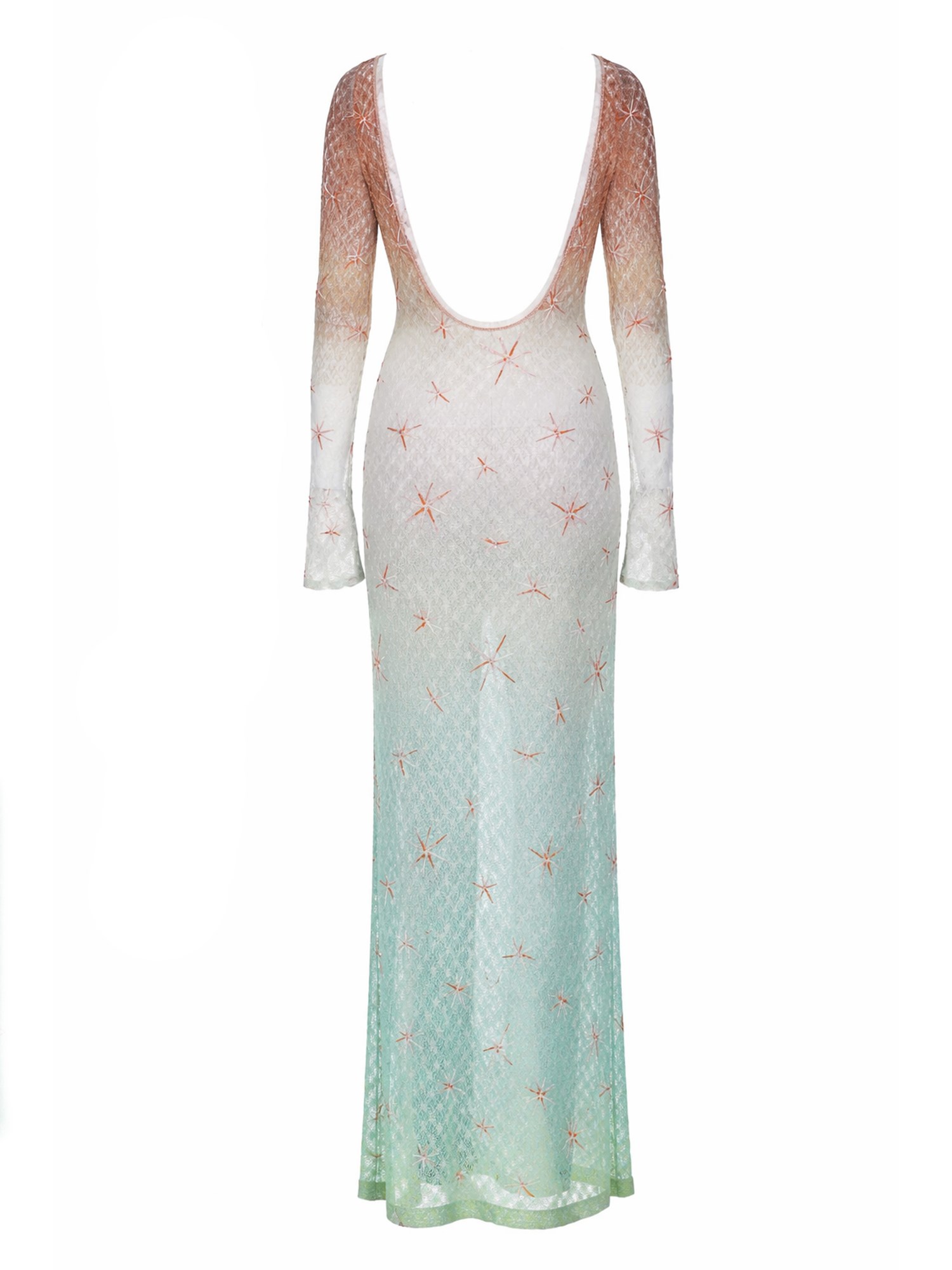 ABITO LUNGO COPRICOSTUME IN VISCOSA LAMÉ CON SPACCO LATERALE E SCHIENA SCOPERTA