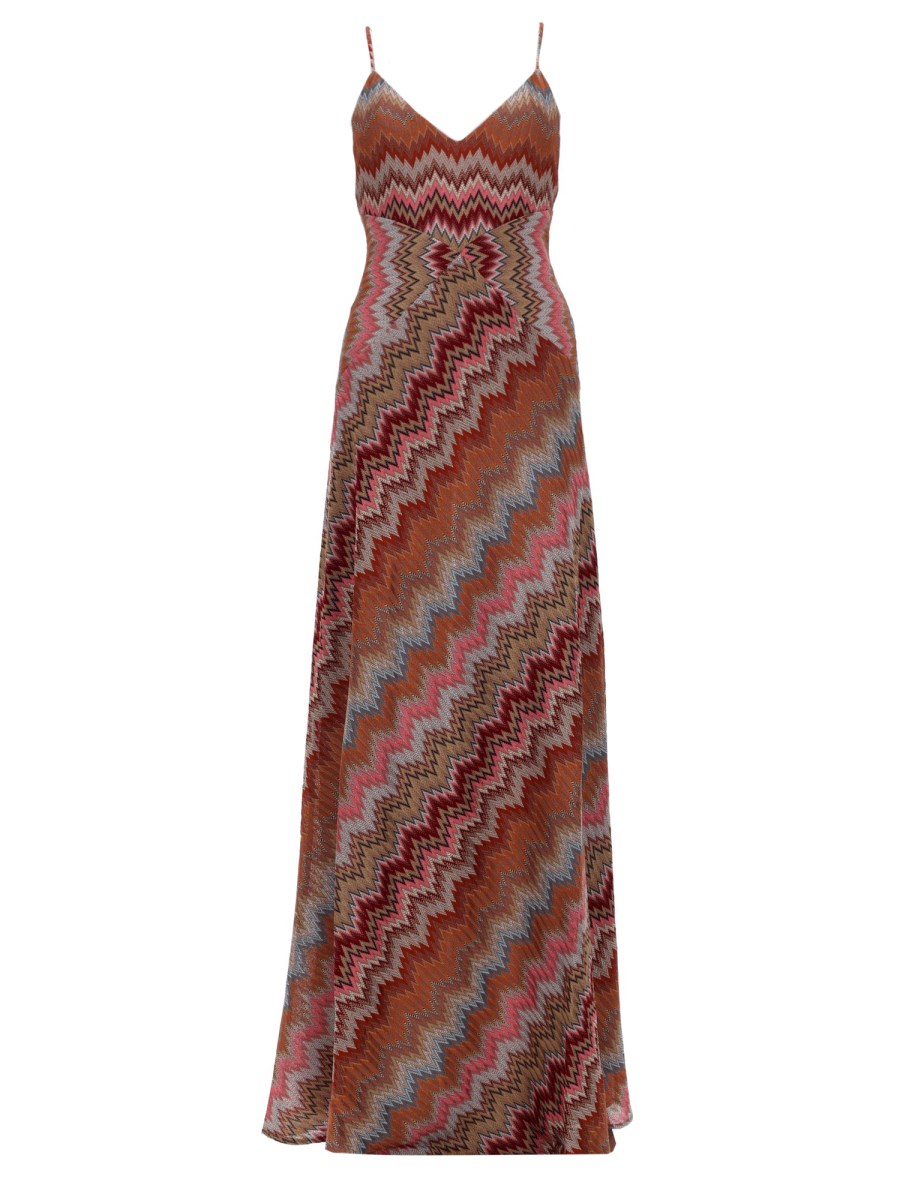 ABITO LUNGO IN VISCOSA CHEVRON CON SCOLLO A V