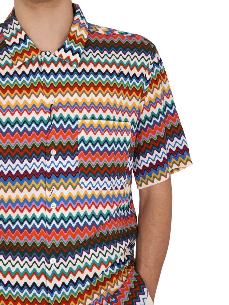 - MANICA CORTA- FANTASIA MULTICOLORE- COLLO CLASSICO- CHIUSURA CON BOTTONI- TASCHINO SUL PETTO- IL MODELLO È ALTO 190 CM E INDOSSA LA TAGLIA L