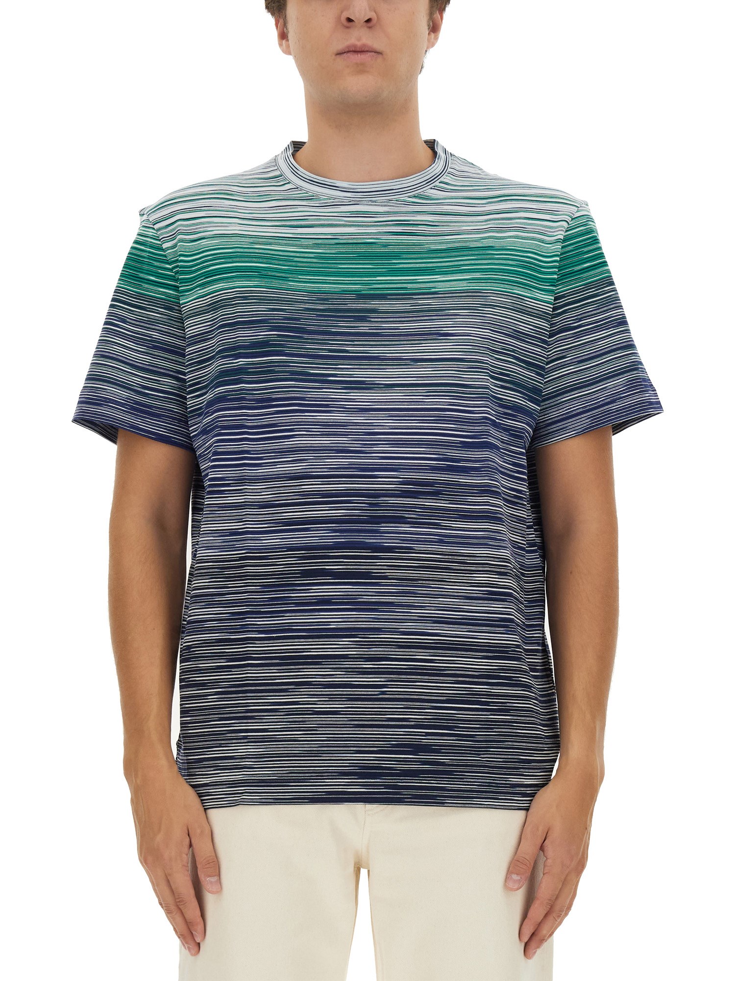 Scoprite la T-shirt Missoni Degrade: una fusione di arte e moda! Provate l'impeccabile maestria di Missoni con questa t-shirt imperdibile. Realizzata in tessuto leggero, questa t-shirt garantisce un comfort eccezionale, rendendola ideale per ogni occasione. Vestita bene o male, indossata da sola o sotto le giacche: le possibilità sono infinite!