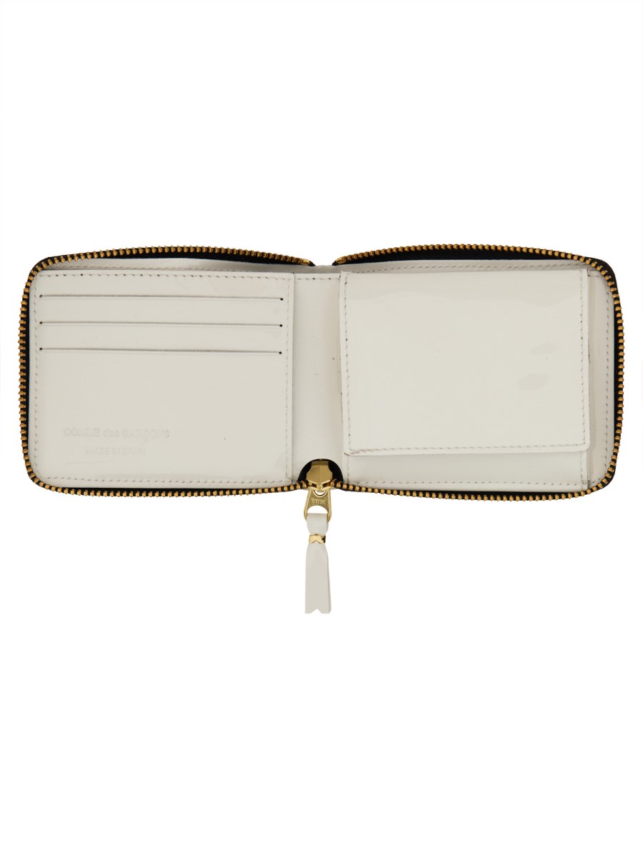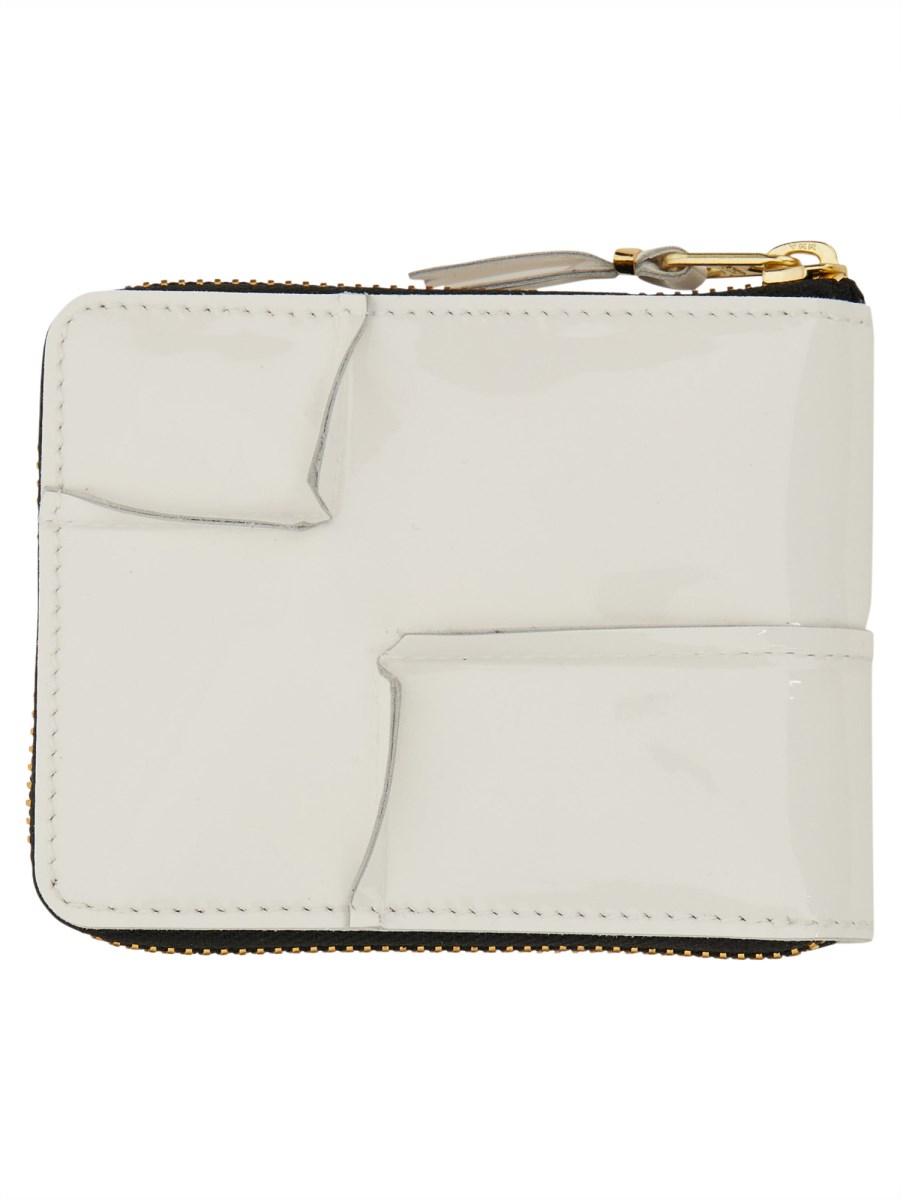 Questo sofisticato portafoglio Herm rovesciato in pelle bianca di Comme Des Garcons Wallet è un accessorio di stile che emana lusso ed eleganza. Realizzato in pelle di alta qualità, questo portafoglio presenta un design elegante con un esclusivo motivo Herm rovesciato, che lo rende un pezzo forte di ogni collezione. Con molteplici scomparti per carte, contanti e monete, questo portafoglio è pratico e alla moda, ed è la scelta perfetta per chi apprezza l'artigianato e lo stile senza tempo.