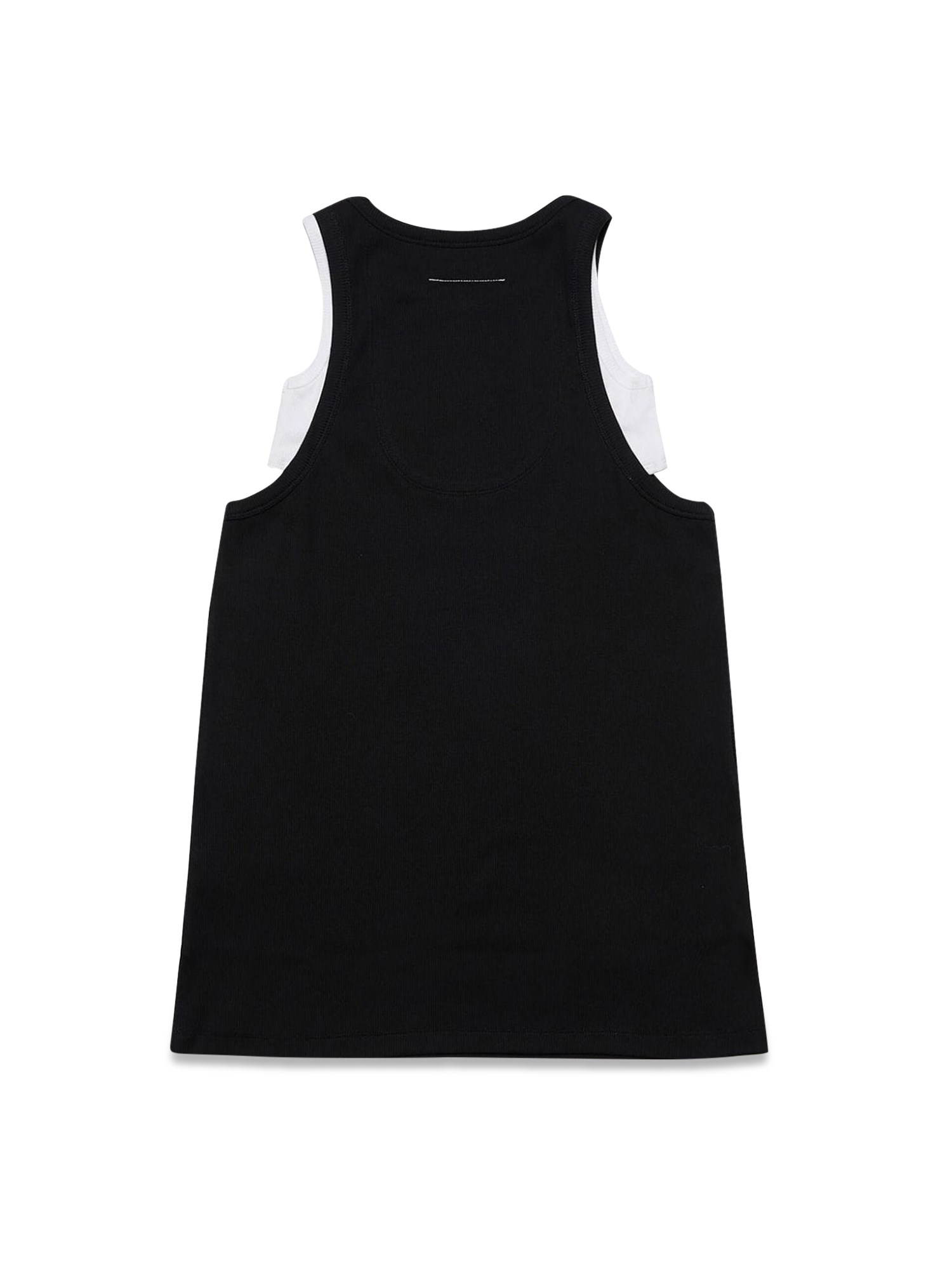 Rimanete chic con la t-shirt MM6 Maison Margiela mm6d98u! Realizzato con scollatura a girocollo e senza maniche, questo top è perfetto per essere indossato a strati o da solo. L'orlo dritto aggiunge un tocco raffinato, mentre lo stile pull-on assicura una vestibilità senza sforzo.