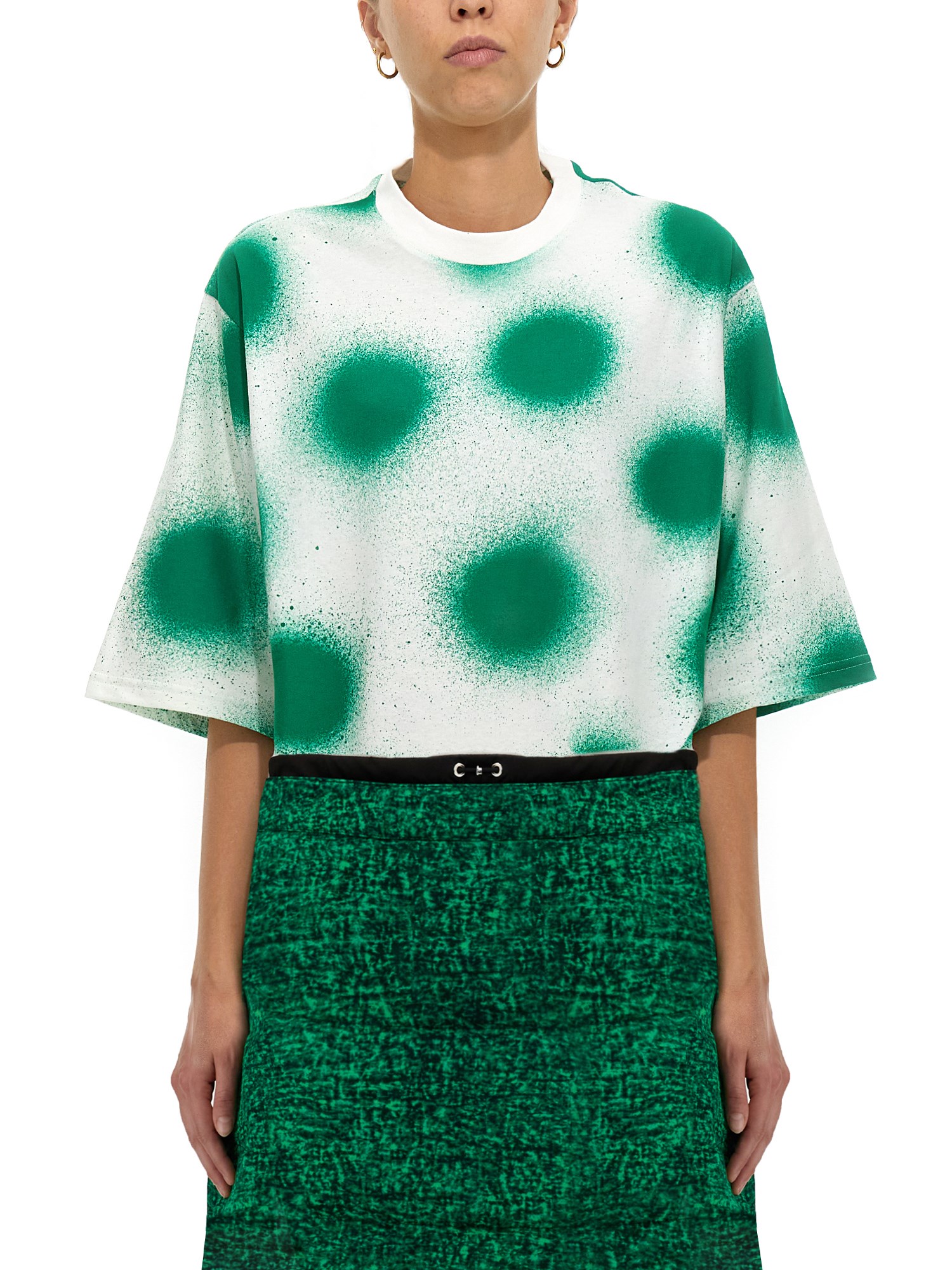 Ispirata all'evasione, questa t-shirt in jersey di cotone della collezione 1 Moncler JW Anderson presenta una stampa audace e colorata. Il capo, di genere neutro, presenta una classica silhouette a girocollo e a maniche corte.