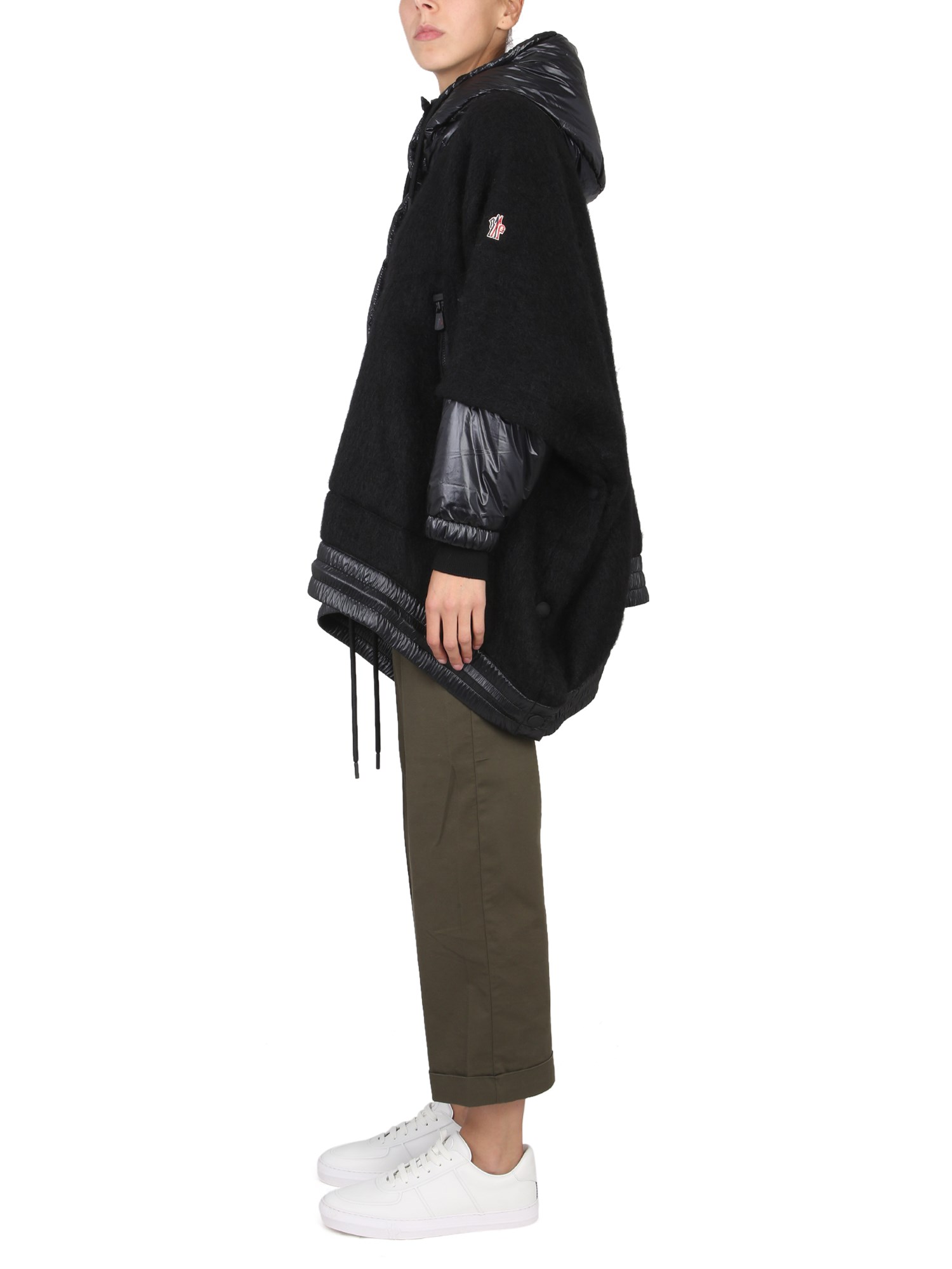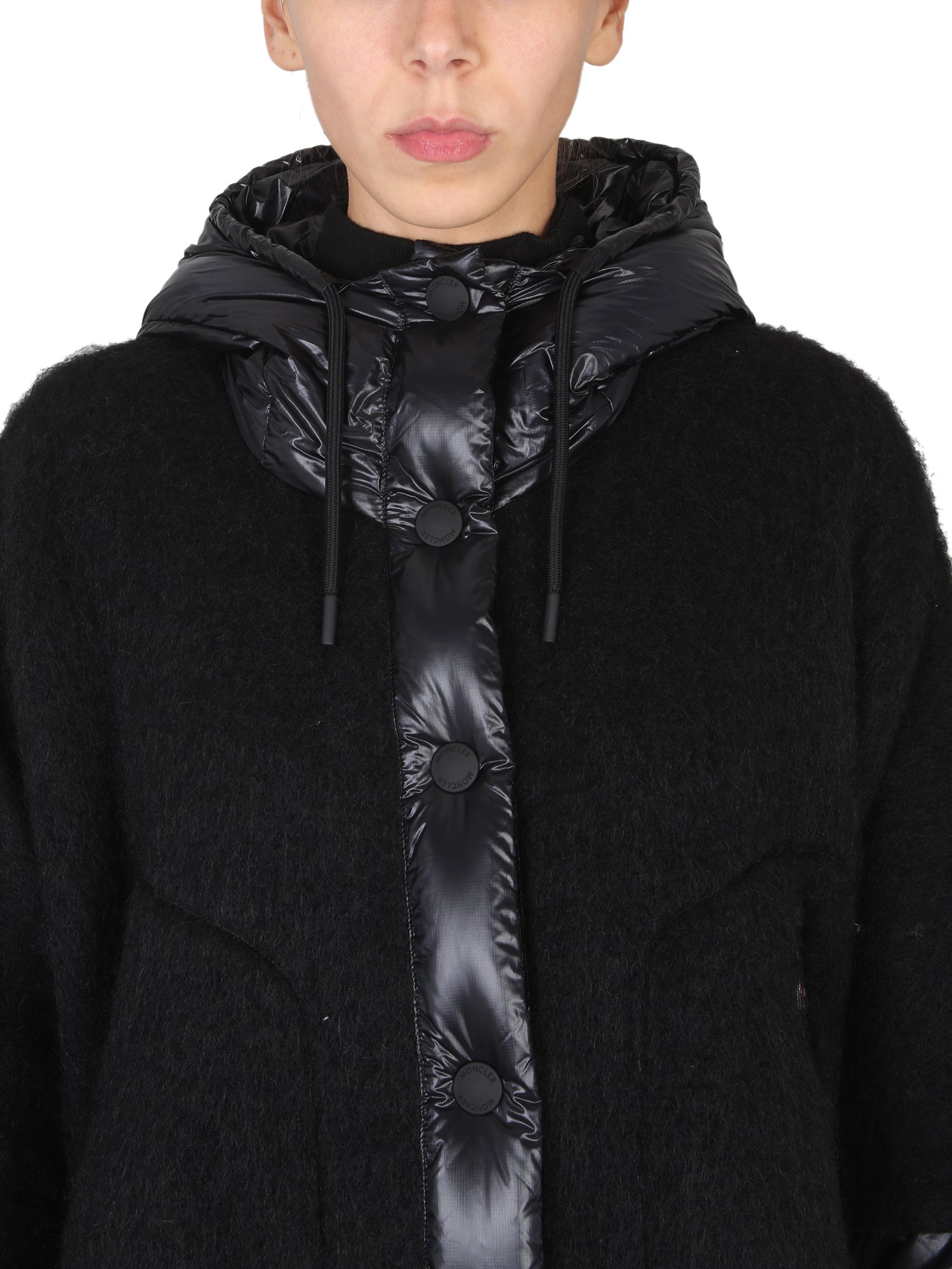 Rimanete caldi e accoglienti nelle notti fredde indossando la mantella in mohair, lana e alpaca della maison Moncler Grenoble. Presenta un cappuccio con imbottitura in piuma, maniche lunghe e fondo del capo regolabile con coulisse. La giacca imbottita ha due tasche laterali per tenere le mani al caldo e una chiusura con bottoni a pressione.