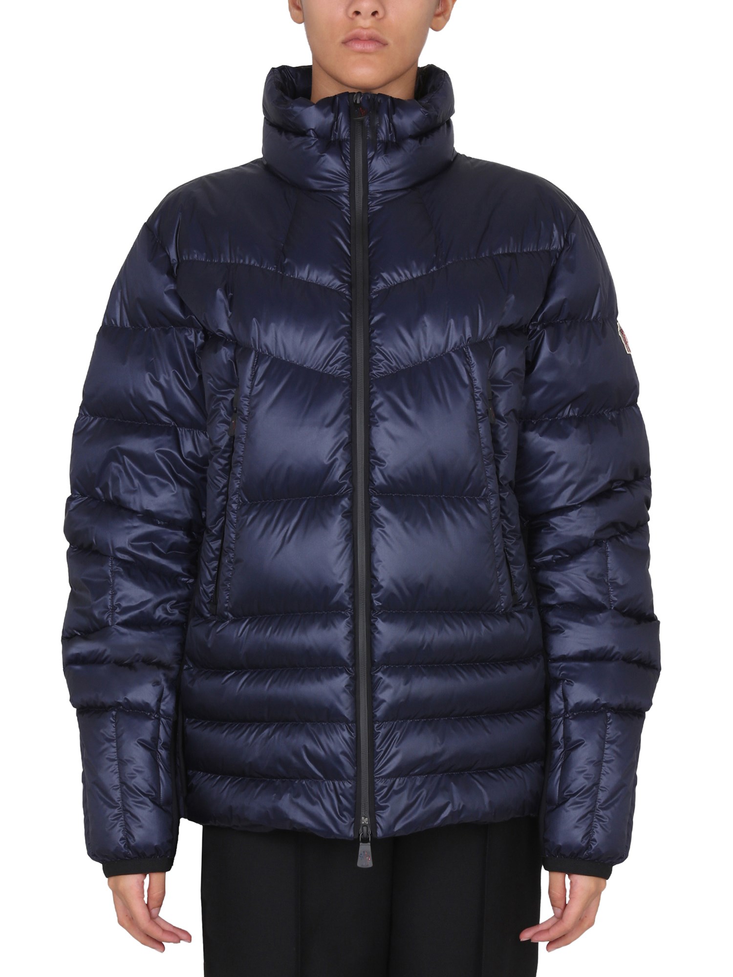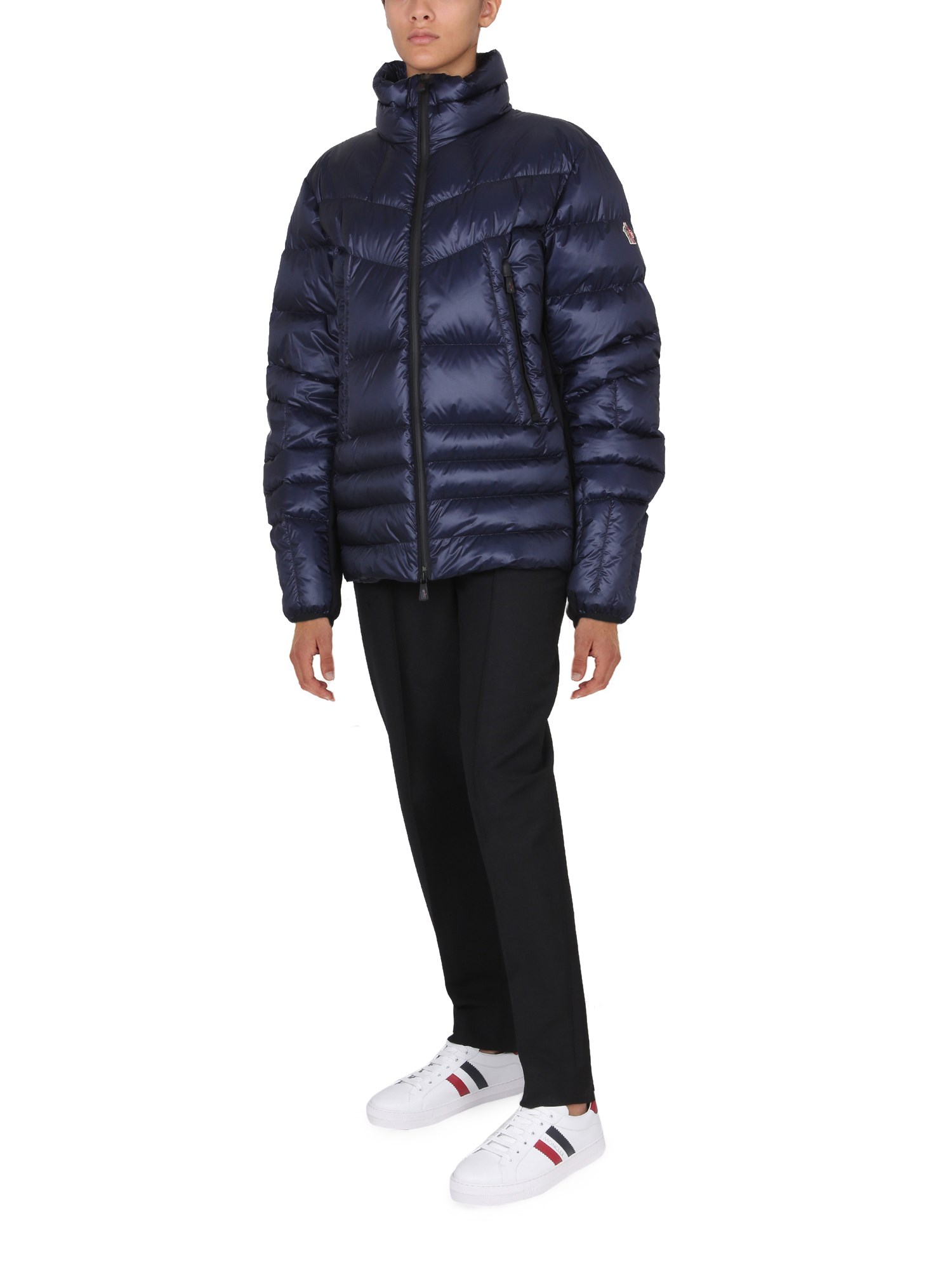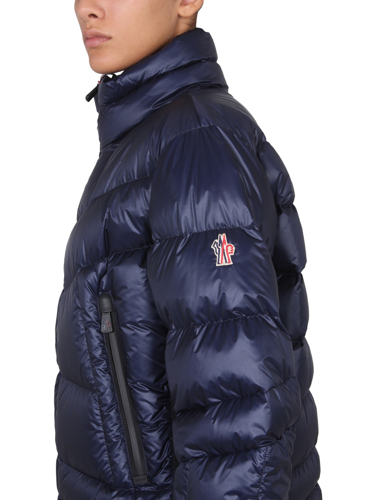 Questa giacca "Canmore" della casa Moncler Grenoble è realizzata in un materiale caldo ma leggero e traspirante. Ha un look classico con un logo iconico sulla manica destra. La giacca ha uno scollo alto, una manica lunga e una chiusura con cerniera sul davanti. La giacca è dotata di due tasche laterali e di un design imbottito.