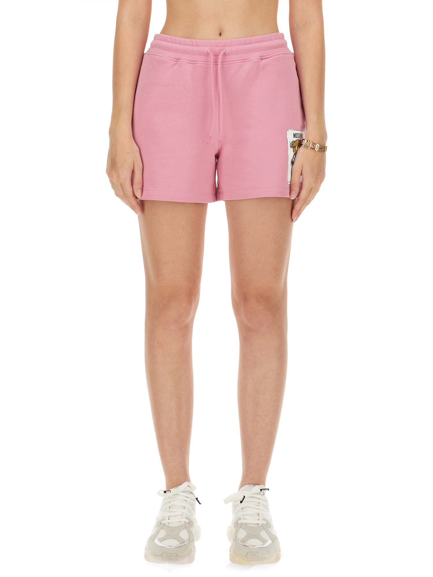 Elevate il vostro guardaroba casual con gli shorts in felpa di Moschino, progettati per garantire comfort e stile. Realizzati con materiali di alta qualità, questi pantaloncini sono caratterizzati da una vestibilità rilassata e da un elastico in vita per un perfetto connubio tra funzionalità e moda. L'iconico logo Moschino aggiunge un tocco di lusso, rendendoli ideali per il relax o per le uscite casual. Provate la perfetta combinazione di morbidezza e resistenza con questi pantaloncini versatili, adatti a qualsiasi stagione.