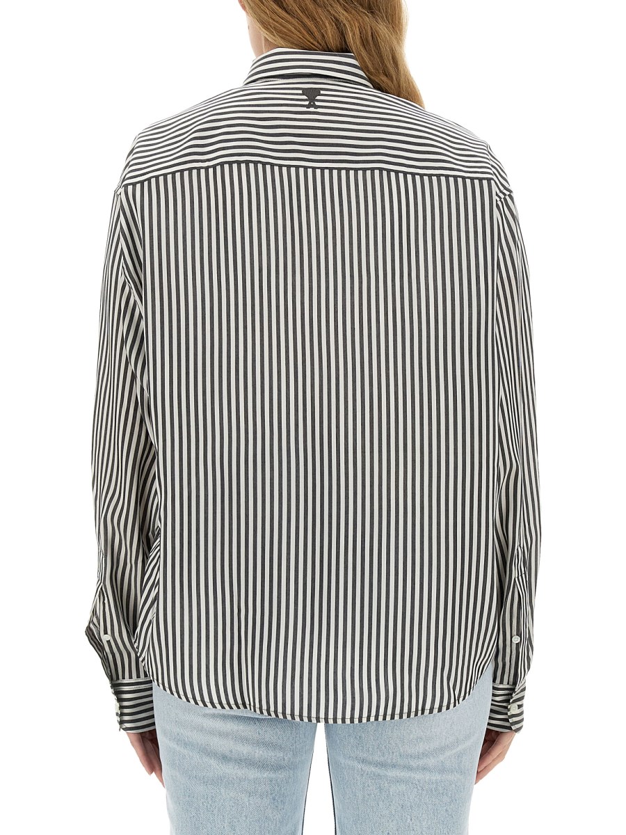 Questa camicia di Ami Paris offre una sensazione di lusso e una durata eccellente. Con la sua vestibilità boxy, questa camicia è progettata per offrire un look rilassato e disinvolto, perfetto per ogni occasione. Il design a righe sul davanti aggiunge un tocco di raffinatezza ed eleganza, rendendo questa camicia un capo versatile che può essere abbinato a qualsiasi tipo di abbigliamento. La chiusura frontale con bottoni consente di indossarla facilmente e fornisce un tocco finale di classe al design complessivo.