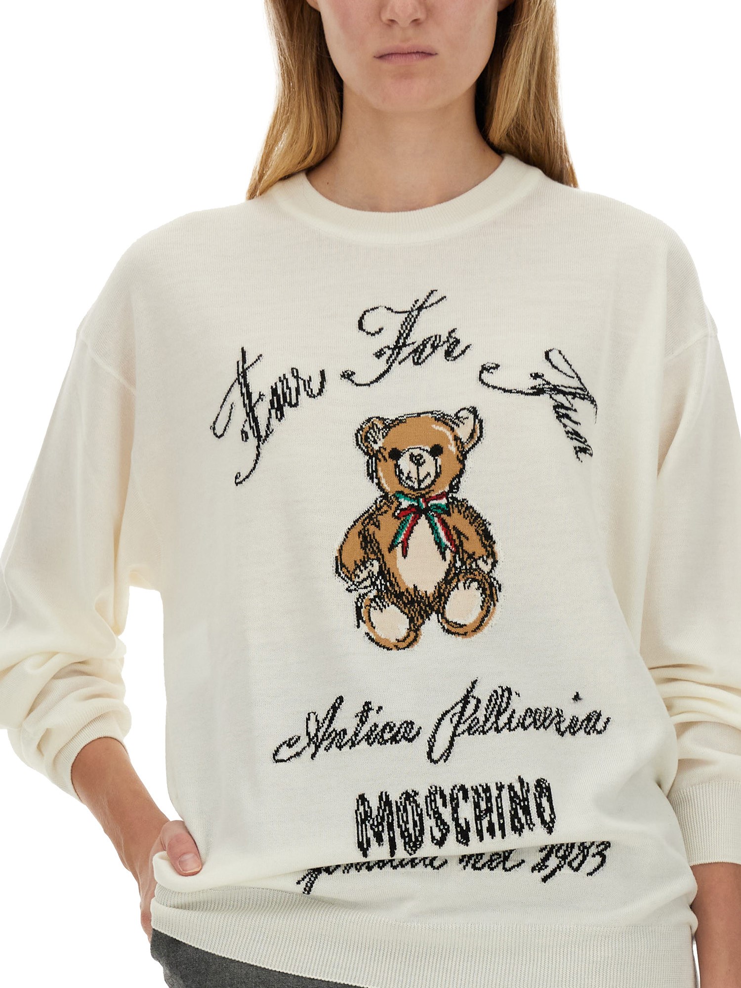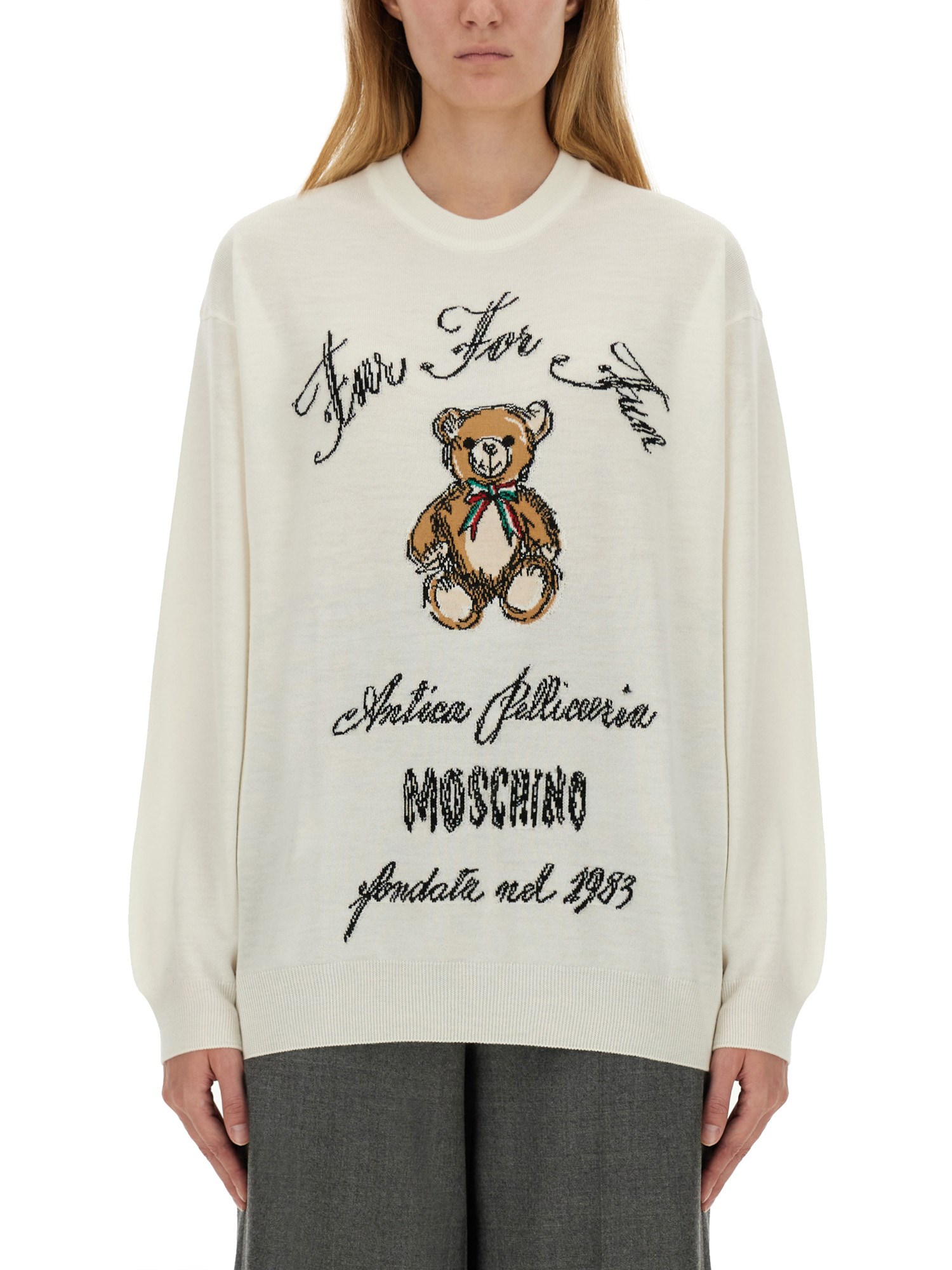 Questa maglia Moschino presenta un caratteristico design con logo, che incarna la miscela di lusso ed estetica giocosa tipica del marchio. Realizzata con materiali di alta qualità, offre comfort e stile, rendendola una scelta ideale per un abbigliamento casual o per una moda street di alto livello. Il logo in evidenza ne esalta il fascino visivo, mentre il taglio versatile assicura una vestibilità adatta a diversi tipi di corpo. Perfetta per chi ama la moda, questa maglia è un capo d'effetto che combina senza sforzo la raffinatezza con un tocco contemporaneo.