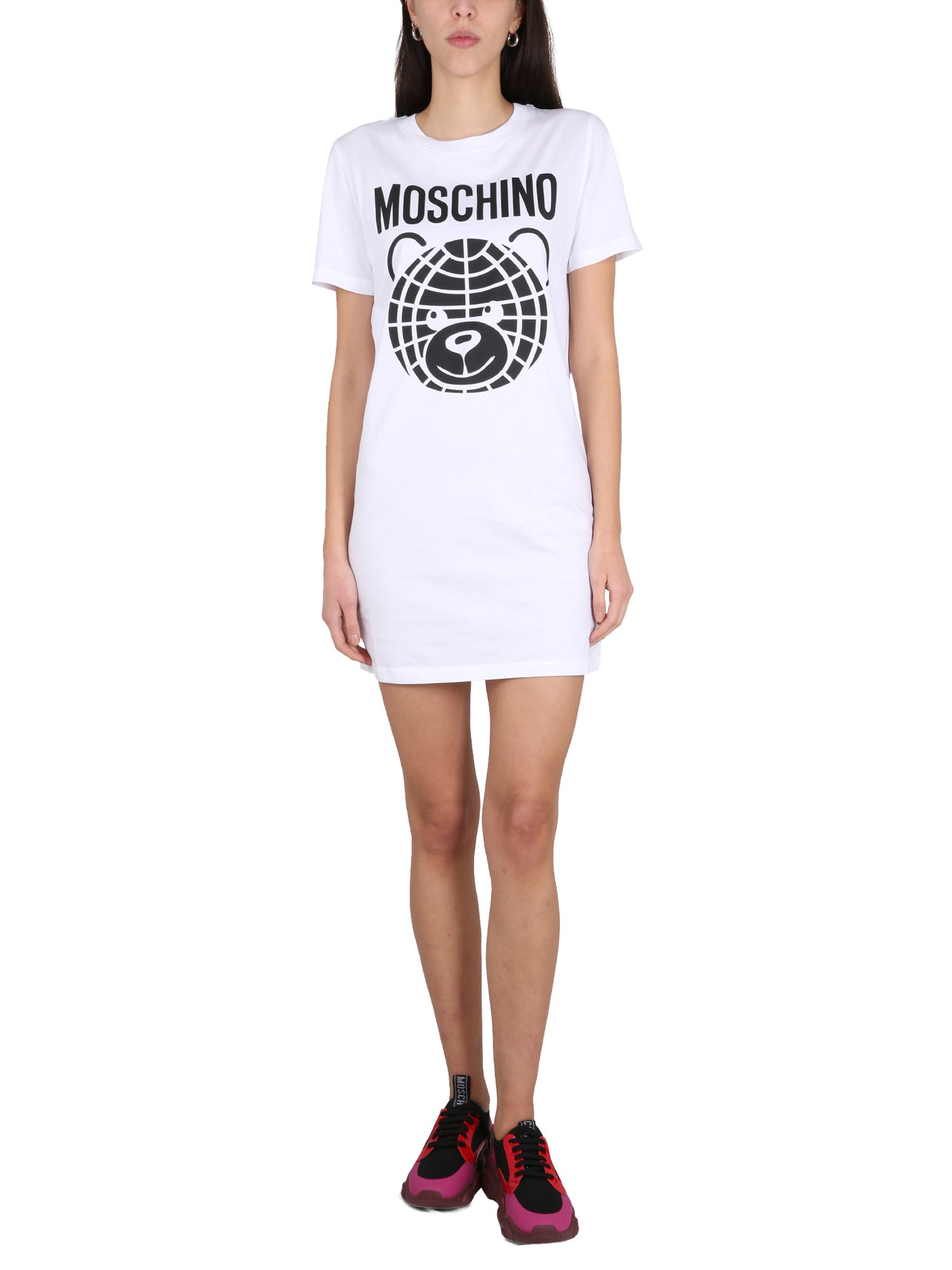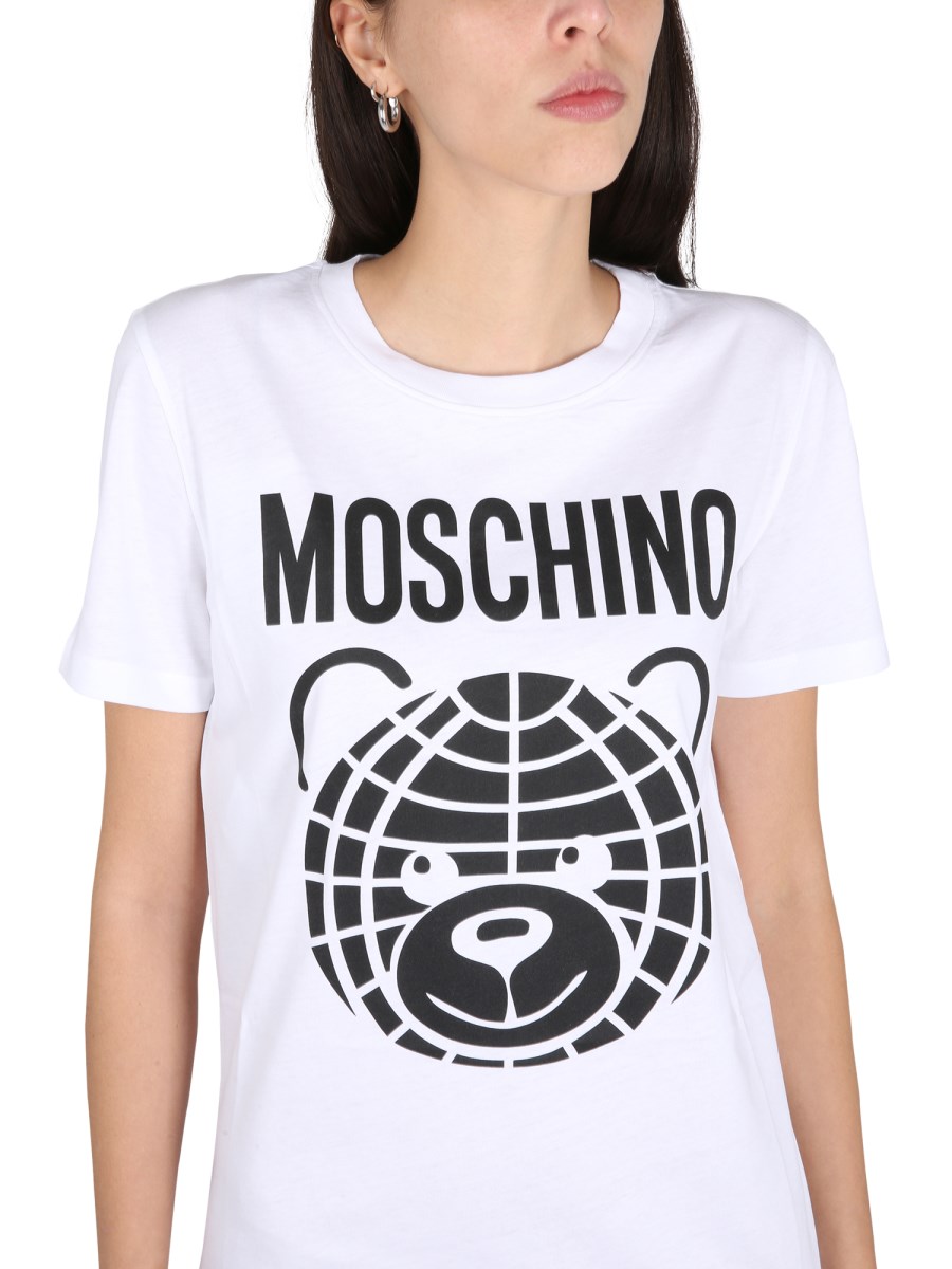 La t-shirt in cotone con stampa logo frontale di Moschino è un ottimo esempio di t-shirt basic. La T-shirt in cotone con stampa logo frontale è una t-shirt bianca a tinta unita realizzata al 100% in cotone. È facile da curare e vi terrà freschi durante l'estate. Una t-shirt fresca, comoda e alla moda, perfetta per tutte le occasioni. Il logo sul davanti è vivace e vi farà sicuramente notare.
