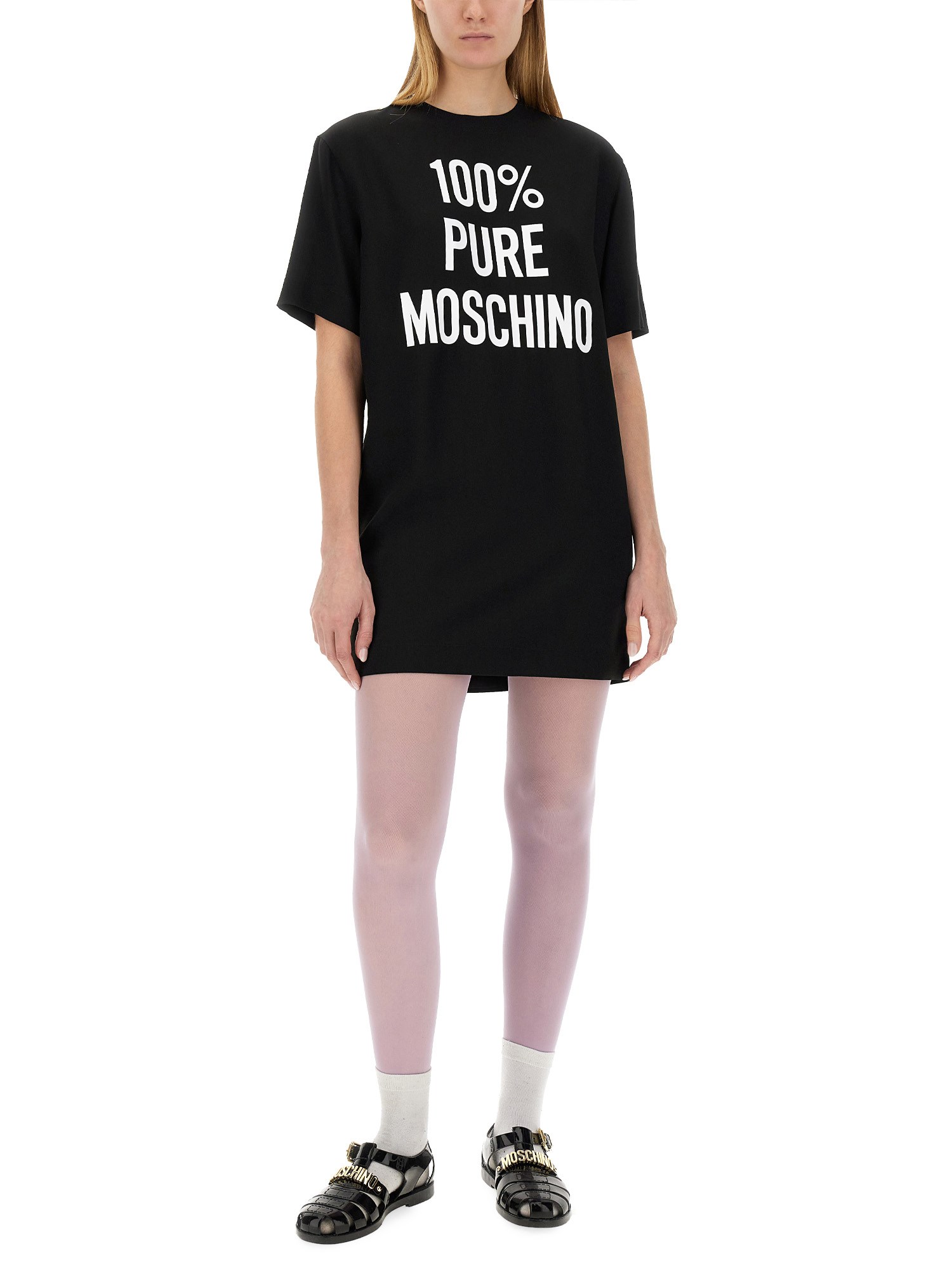Questo abito di Moschino combina senza sforzo il fascino senza tempo di una classica T-shirt con la raffinatezza di un vestito. Realizzato in acetato finissimo, accarezza la pelle con un tocco delicato, assicurando un'esperienza di lusso. Ornato dal nostro iconico logo, questo abito emana un'aria di esclusività e stile, rendendolo un'aggiunta indispensabile al vostro guardaroba.