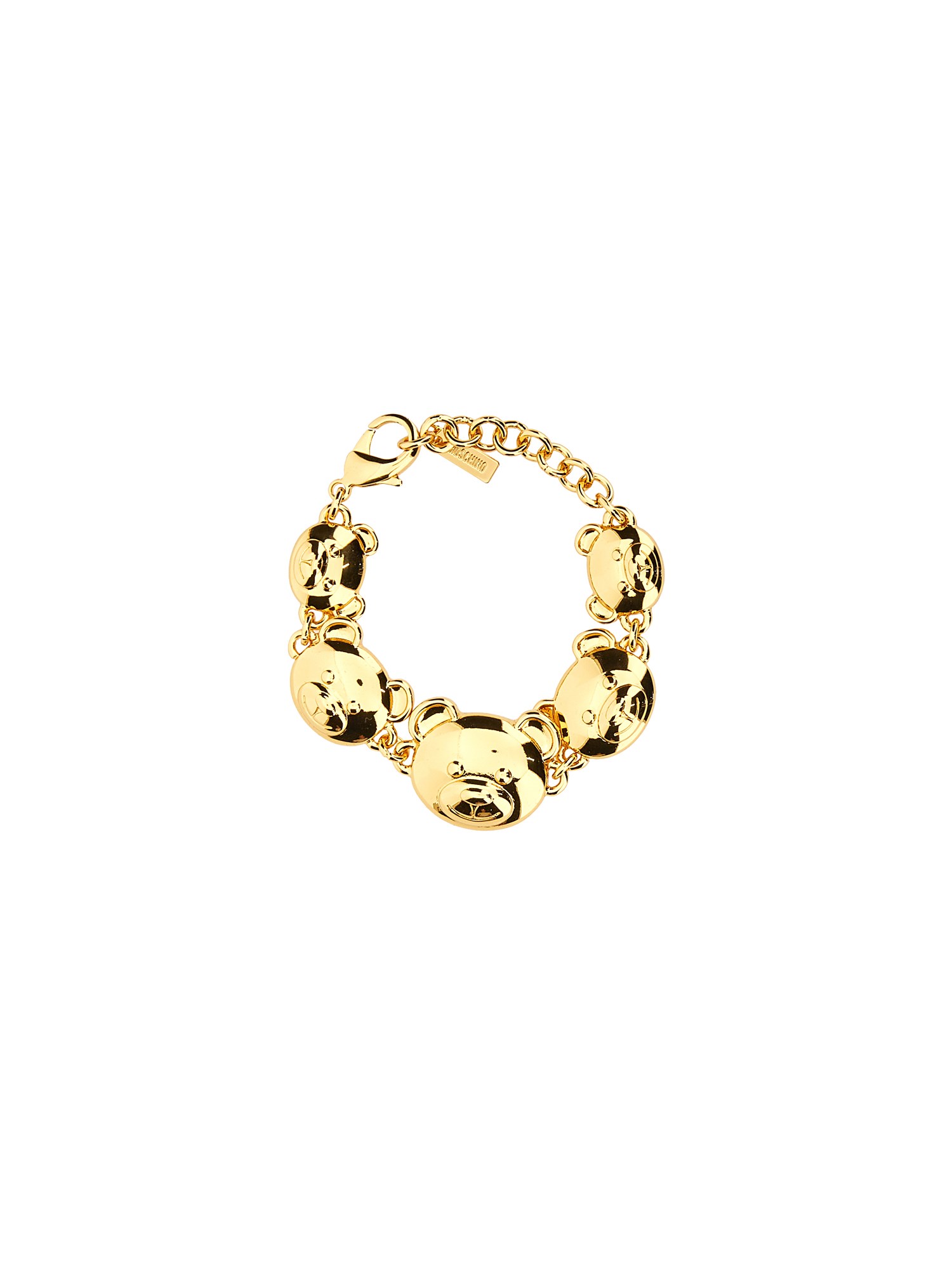 L'orso più dolce di sempre è ora il vostro migliore amico! Il braccialetto con orsetto di Moschino è il vostro compagno perfetto. Non vorrete mai stare senza di lui! Ha una chiusura a gancio e una struttura in metallo con finitura dorata. Gli orsetti di diverse dimensioni adornano il braccialetto e sono un ottimo ricordo di uno dei preferiti dell'infanzia.