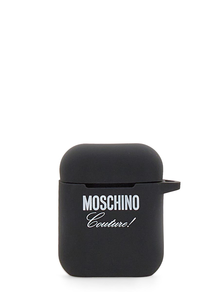 La custodia per AirPods di Moschino è un piccolo contenitore protettivo per riporre gli AirPods quando non vengono utilizzati. La custodia è realizzata in silicone morbido e resistente e ha una chiusura a scatto. Può essere utilizzata anche per ricaricare gli AirPods, grazie al foro per il cavo Lightning incluso. Sul retro è presente anche un gancio per il portachiavi.