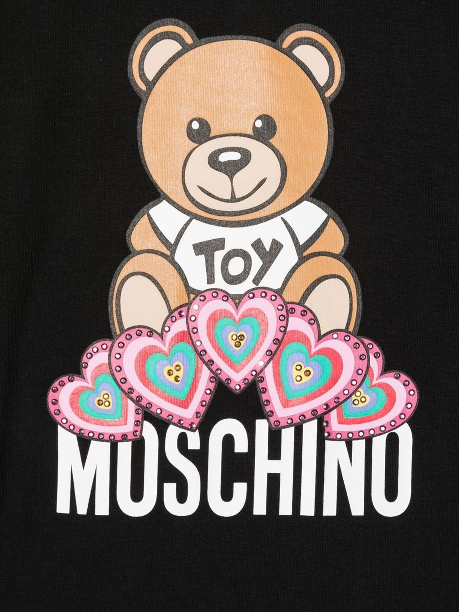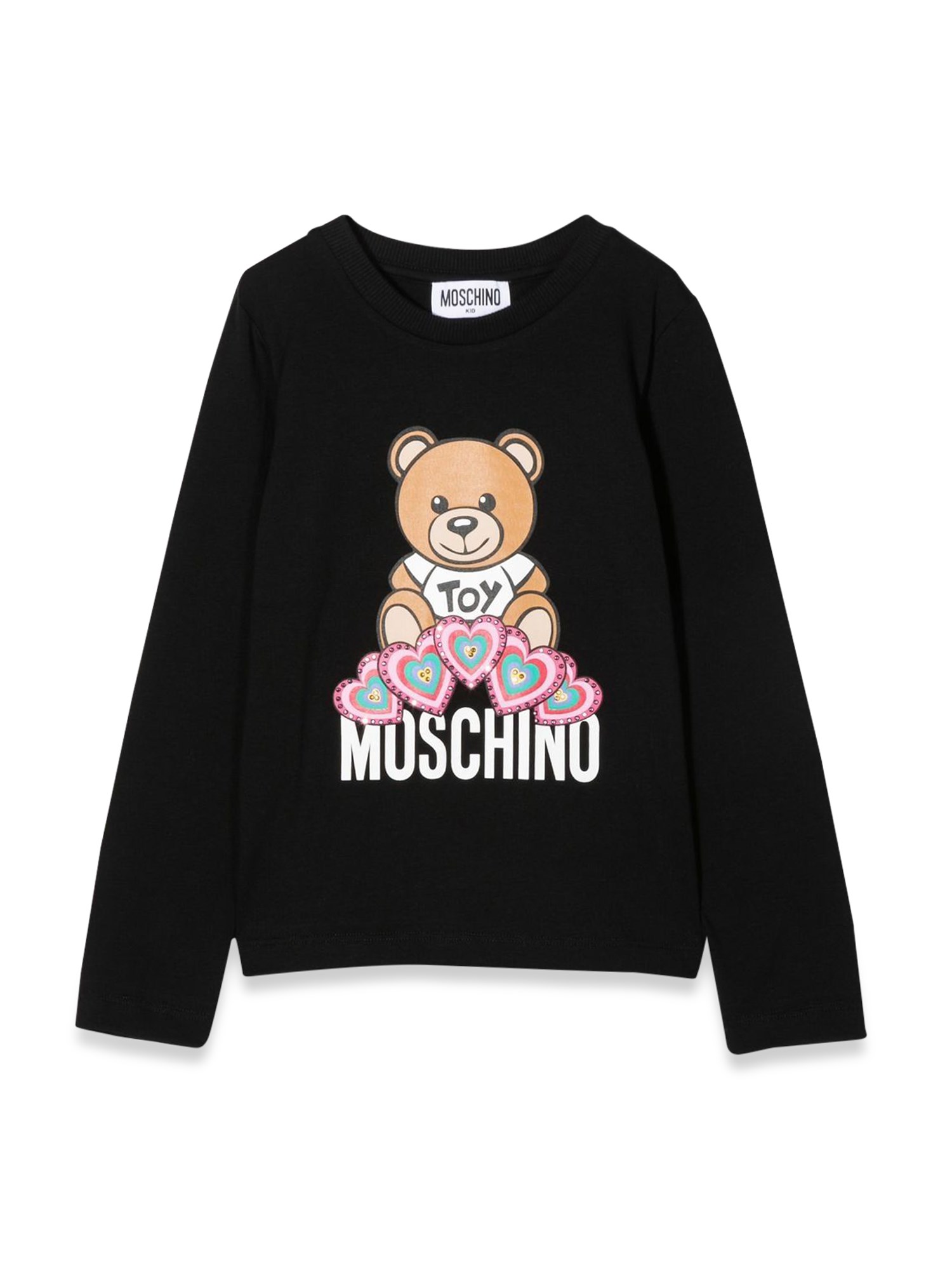 Questa T-shirt a maniche lunghe di Moschino è proprio quello che ci vuole per le fredde notti invernali. Ha una scollatura a girocollo, maniche lunghe e orlo dritto. Realizzata in puro e resistente cotone, la t-shirt ha un disegno di orsetto sul davanti.