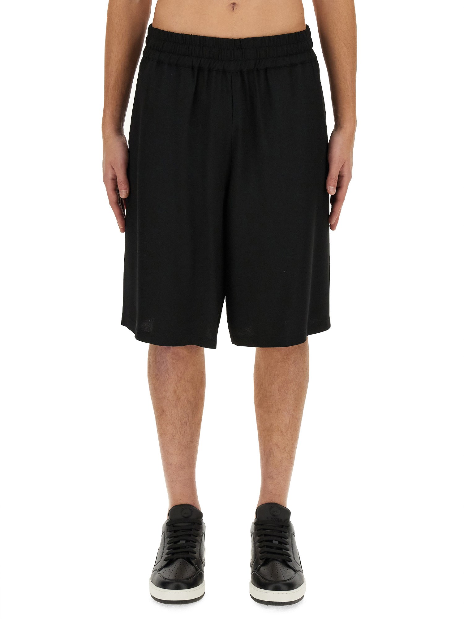 Questi pantaloncini di Moschino sono caratterizzati da un lussuoso mix di acetato e viscosa, che assicura una sensazione di morbidezza e comfort sulla pelle. L'elastico in vita assicura una vestibilità perfetta, consentendo di muoversi senza sforzo e con il massimo comfort per tutto il giorno. Che si tratti di passeggiare sulla spiaggia o di partecipare a una serata sofisticata, questi bermuda neri sono l'emblema dell'eleganza e della versatilità.