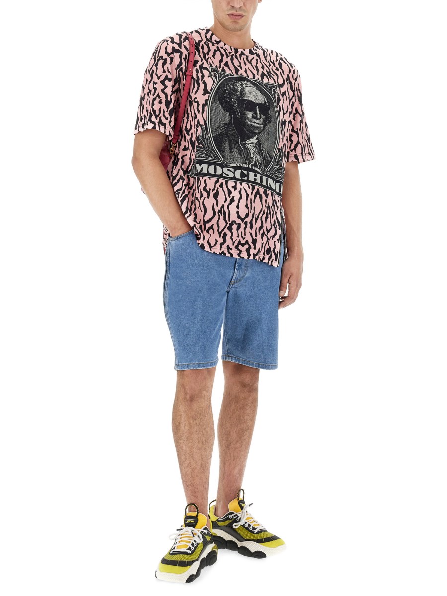 Questa T-shirt girocollo di Moschino è perfetta per le occasioni casual o formali. Il morbido tessuto di cotone è ideale per essere indossato a strati o da solo. Il colore è brillante e il ricamo è un elemento interessante. La classica T-shirt girocollo in cotone con logo ricamato multicolore è un capo base per ogni uomo. Il look classico della T-shirt è una scelta elegante per il lavoro o il tempo libero.