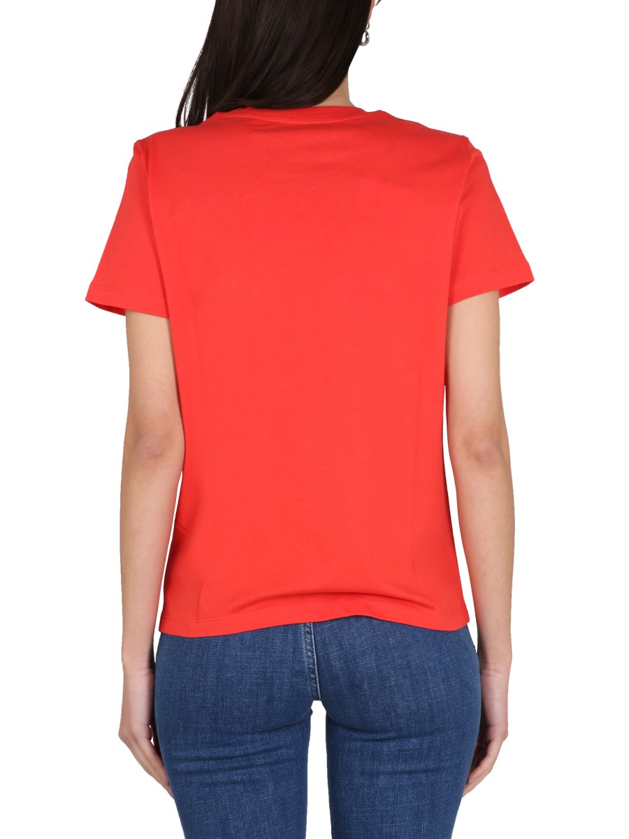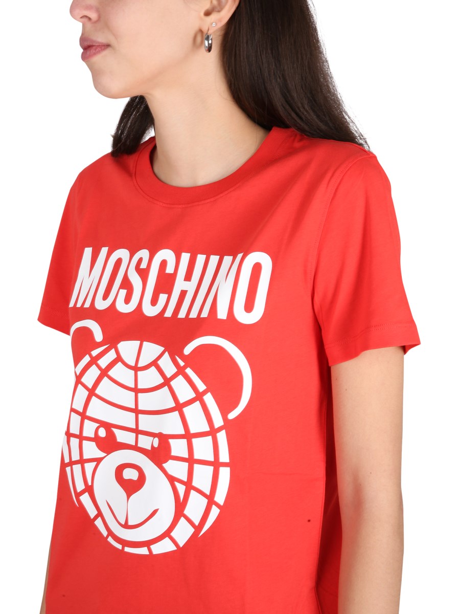 Questa T-shirt rossa di Moschino presenta una stampa logo elegante e moderna che risalta sul morbido tessuto di cotone. La T-shirt in cotone con stampa logo è una maglietta rossa di base con materiale in cotone. È un'ottima scelta per l'abbigliamento quotidiano. La maglietta è morbida e comoda da indossare ed è fatta per durare nel tempo.
