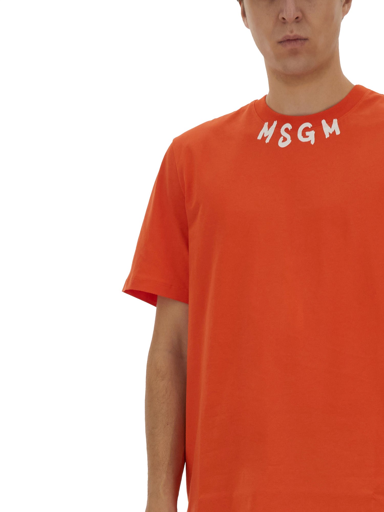 T-SHIRT IN COTONE CON LOGO PENNELLATO SUL COLLO