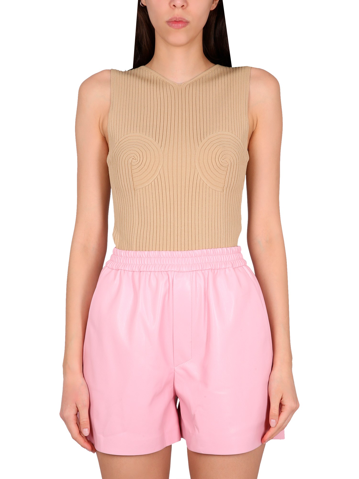 Questo top a coste di Nanushka è perfetto per essere indossato a strati o da solo. Il tessuto in viscosa è morbido e traspirante e vi manterrà fresche e asciutte. Il design con scollo a V è lusinghiero e si abbina a una varietà di outfit. È un top versatile e comodo da indossare tutti i giorni. Caratterizzata da un tessuto in viscosa che offre una sensazione di comfort e morbidezza, questa camicia è facile da abbinare a qualsiasi fondo.