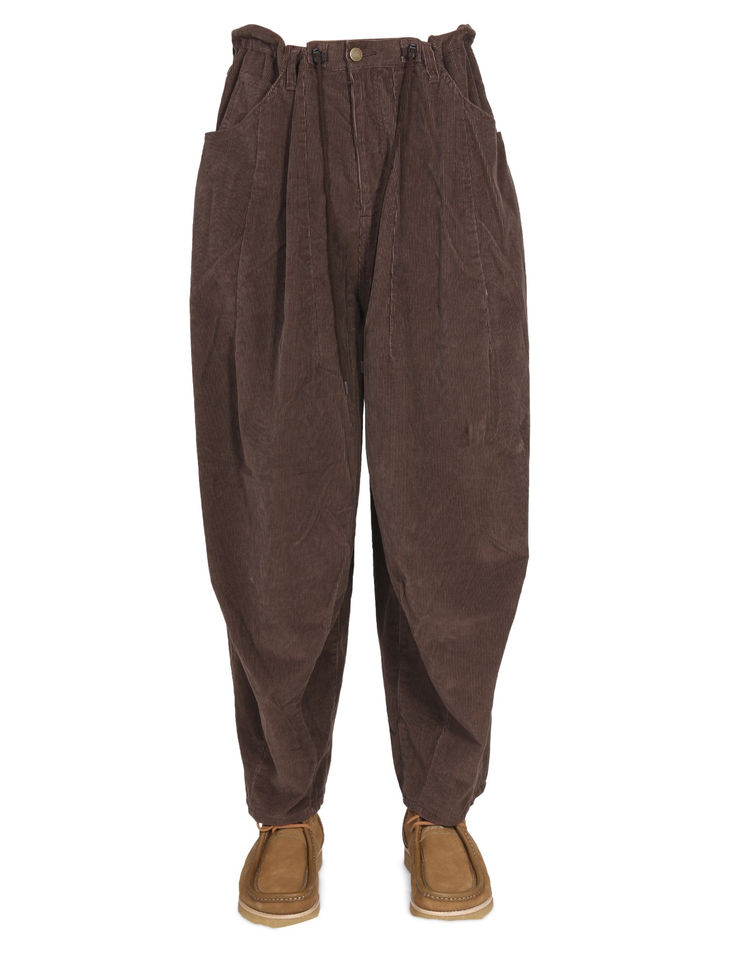 Date un tocco di classe al vostro abbigliamento quotidiano scegliendo i pantaloni H.D. della maison Needles. Caratterizzati da una coulisse in vita con chiusura a bottoni, i pantaloni hanno due tasche laterali e due tasche posteriori. Sono estremamente comodi e possono essere abbinati a magliette e camicie casual.