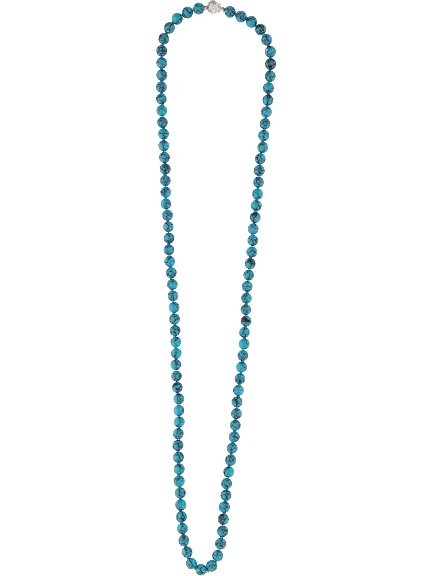 Elevate il vostro stile con la splendida collana turchese di Needles. Questo pezzo squisito è caratterizzato da pietre turchesi autentiche accuratamente lavorate a mano su una catena delicata, creando un accessorio unico e accattivante che completerà senza sforzo qualsiasi outfit. Perfetta per aggiungere un tocco di colore al vostro look, questa collana è un must per ogni collezione di gioielli. Aggiornate il vostro ensemble con la bellezza senza tempo della nostra collana turchese di Needles.