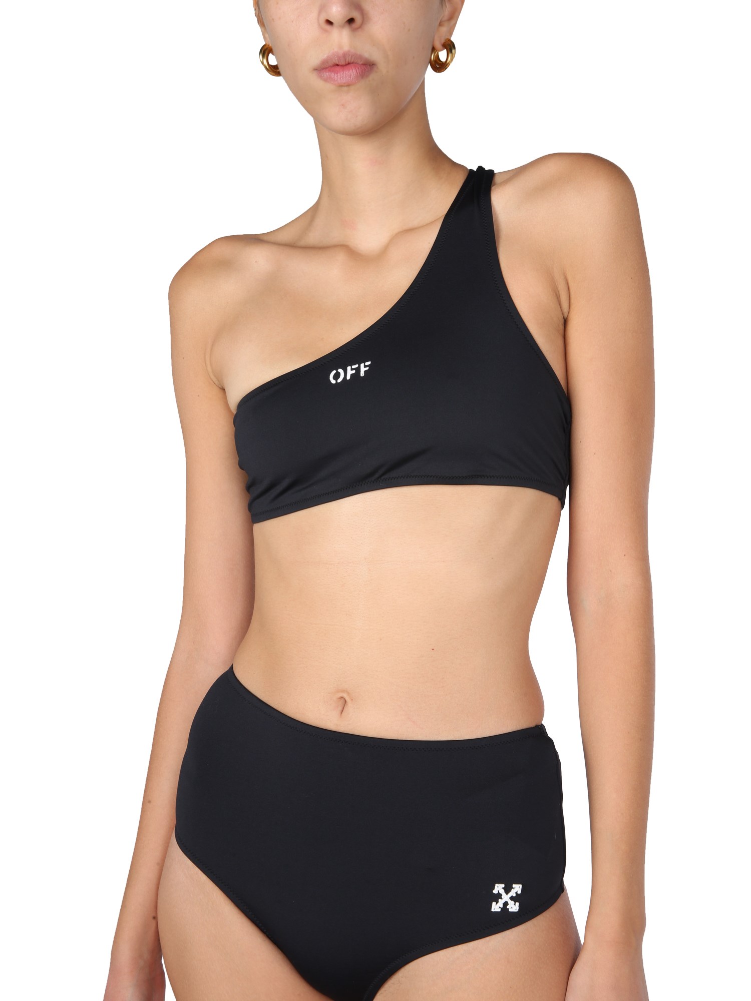- TOP BIKINI MONOSPALLA CON STAMPA LOGO