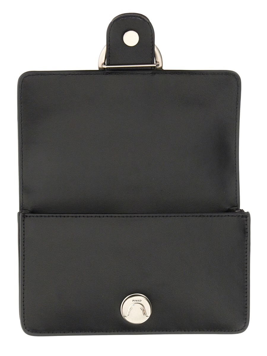 Mini Love Bag Icon in pelle morbida e setosa. La chiusura a strappo in pelle borchiata è impreziosita dall'iconica fibbia Love Birds Diamond Cut in metallo. L'accessorio vanta un interno foderato in microsuede, completo di tasca centrale divisoria con zip e tasca portaoggetti. La tracolla staccabile combina la classica catena a maglie rotonde con una pratica spallina in pelle regolabile.