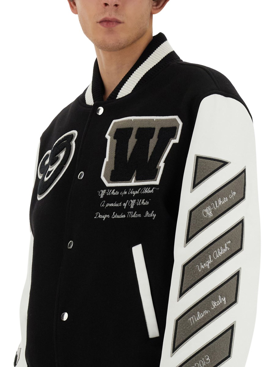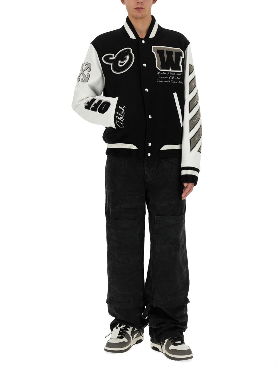 Abbracciate il fascino senza tempo di questa giacca di Off-White e fate un'audace dichiarazione di moda ovunque andiate. Progettata per garantire comfort e stile, questa giacca Varsity offre una vestibilità rilassata ed è perfetta per essere indossata durante i mesi più freddi. La chiusura con bottoni a pressione e il colletto a coste assicurano una vestibilità sicura e aderente, mentre le molteplici tasche offrono comode opzioni di stoccaggio.