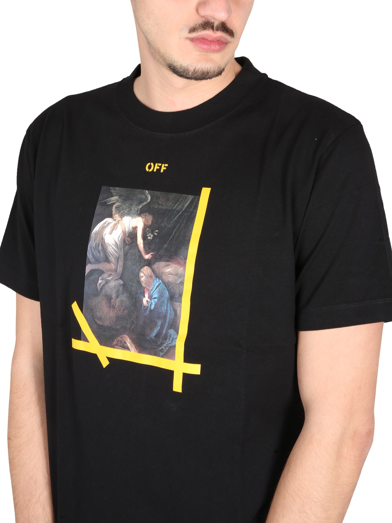 - GIROCOLLO- STAMPA "CARAVAGGIO" SUL DAVANTI- STAMPA ARROW SUL RETRO- REGULAR FIT- 100% COTONE- IL MODELLO E'ALTO 185 CM E INDOSSA LA TAGLIA L