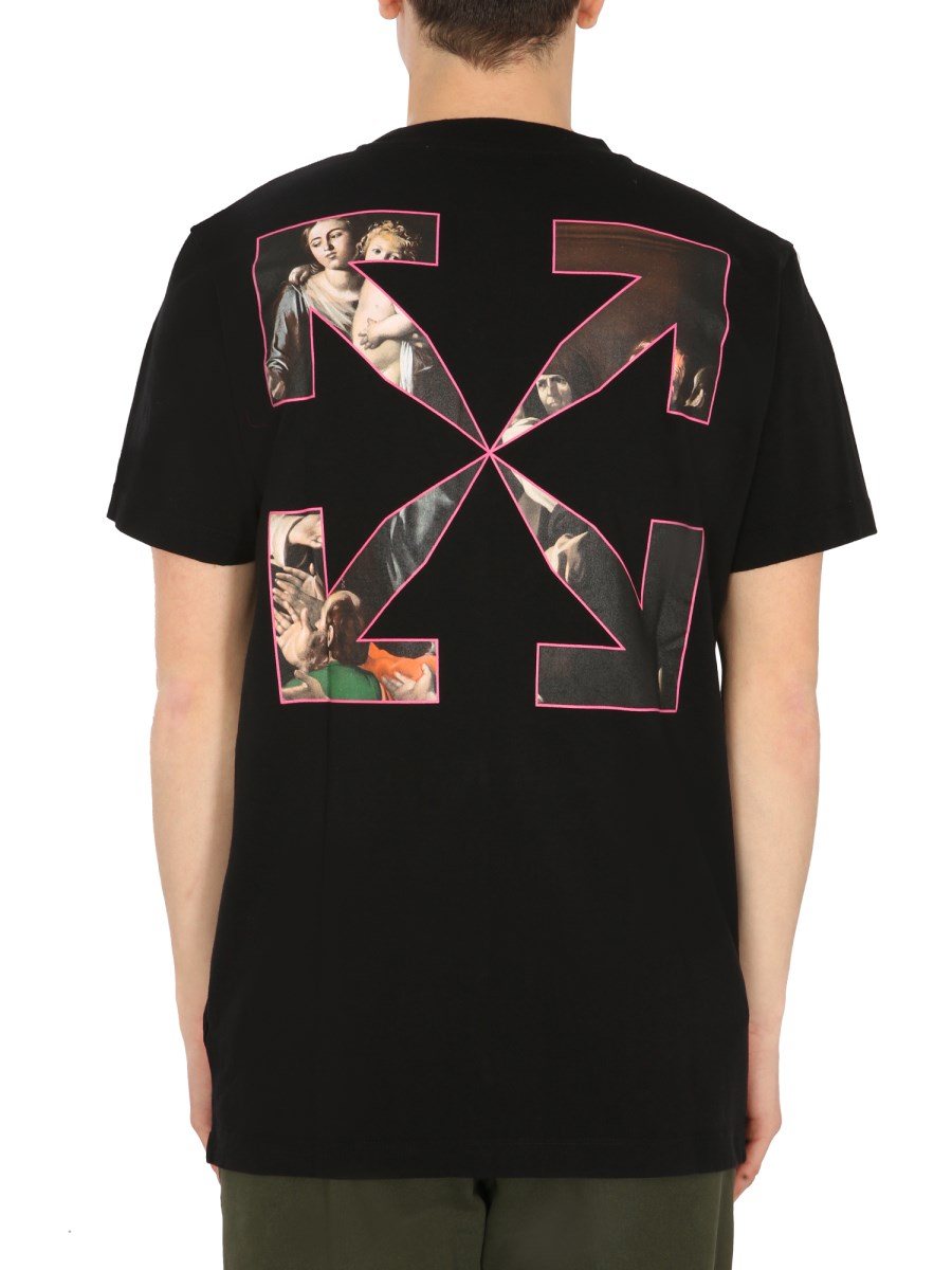 - GIROCOLLO- STAMPA SPRAYED CARAVAGGIO FRONTALE - SLIM FIT - 100% COTONE - IL MODELLO É ALTO 190 CM E INDOSSA LA TAGLIA L
